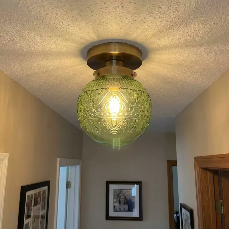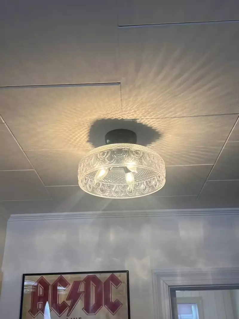 The glass pattern is so unique, and the way it radiates light across the ceiling is magical. It’s bright enough for everyday use, but still feels warm and inviting.