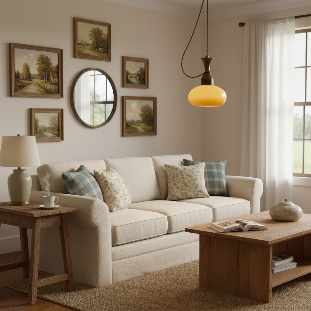 This vintage round glass plug-in pendant light features a layered milk glass shade, blending retro charm with modern style. Its soft, diffused glow creates a warm ambiance, ideal for kitchens and dining areas seeking a touch of timeless elegance.