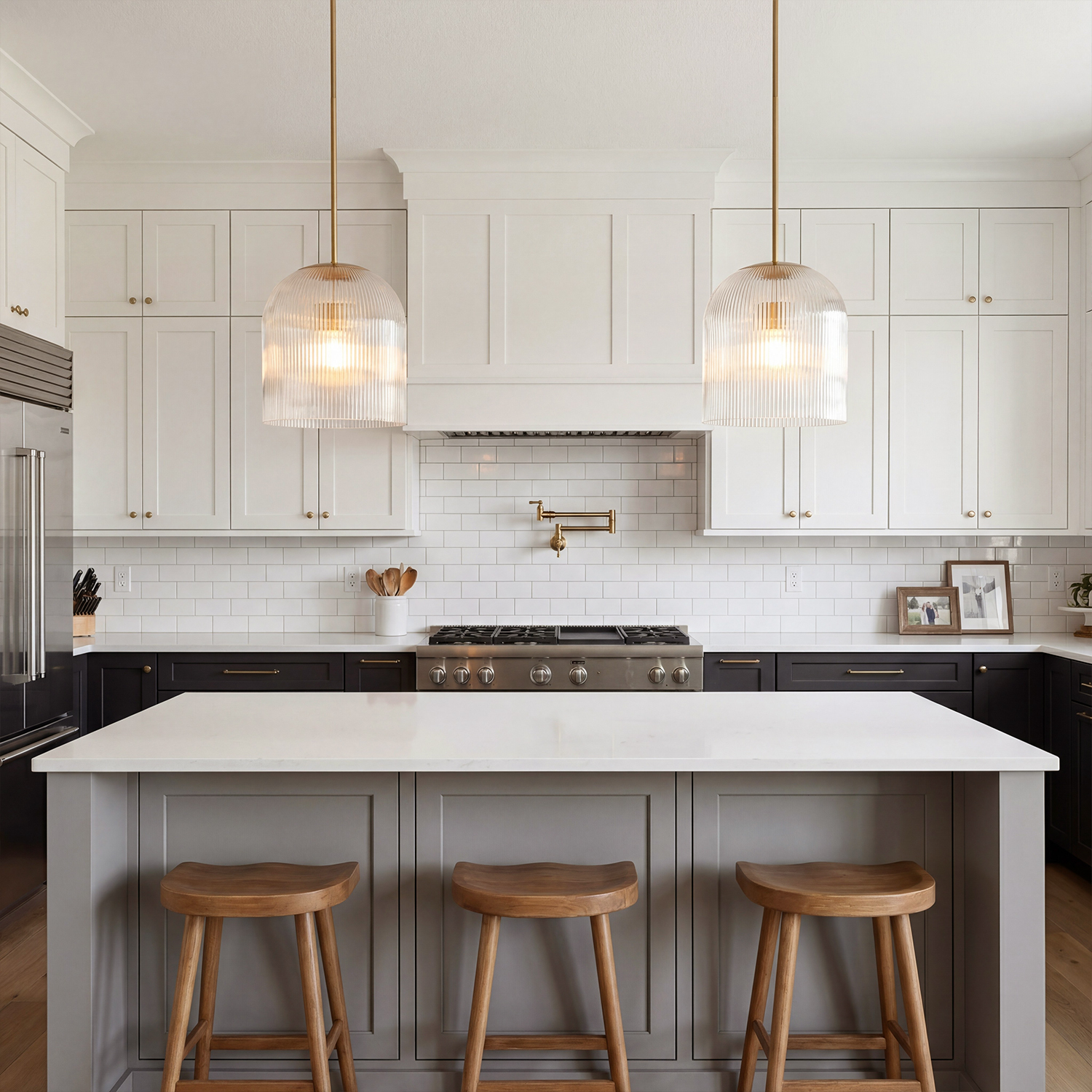 Alain Farmhouse Cooper Ribbed Glass Pendant Light For Dining Room & Kitchen