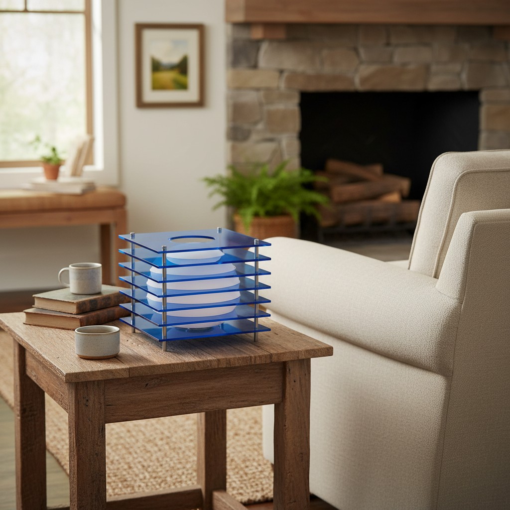 This table lamp showcases a sculptural, thousand-layer moon design crafted from precision-cut acrylic sheets with an iron frame. Inspired by wabi-sabi aesthetics, it emits a soft, diffused LED glow that feels calm and meditative. With adjustable colors and dimming via remote control, it creates a serene atmosphere—perfect for bedrooms, living rooms, or quiet reading corners.