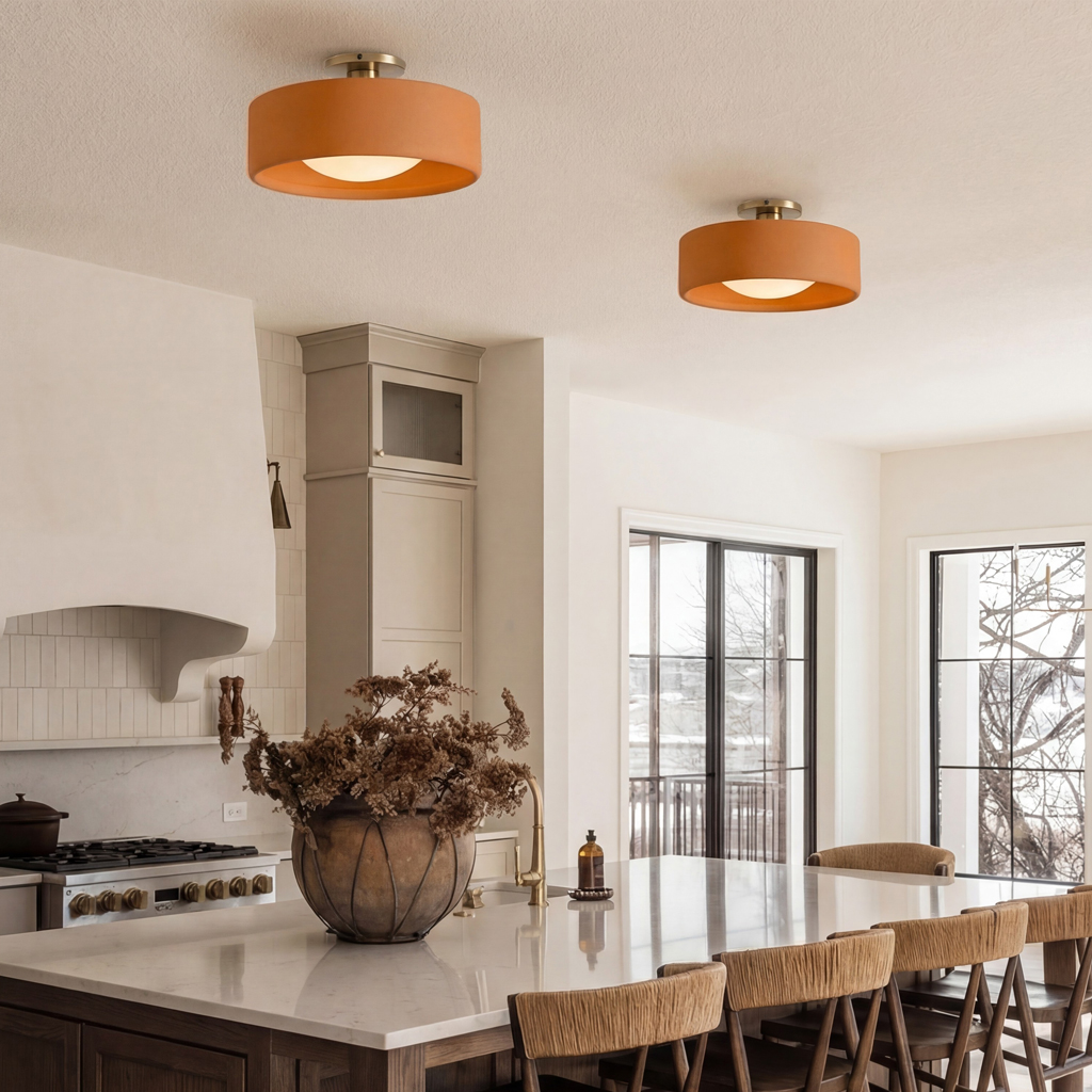 This ceramic flush mount ceiling light serves as perfect bedroom ceiling fixtures . It also creates cozy atmospheres in living room, bathrooms, or entryways. With its modern charm, it is ideal for relaxation or daily routines.
