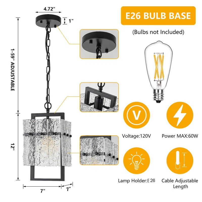 This kitchen island pendant light with water ripple glass and matte black metal offers a modern charm, matching various furnishing styles and adding elegance to your home. Ideal for bedrooms, living rooms, dining rooms, entryways, hallways, etc.
