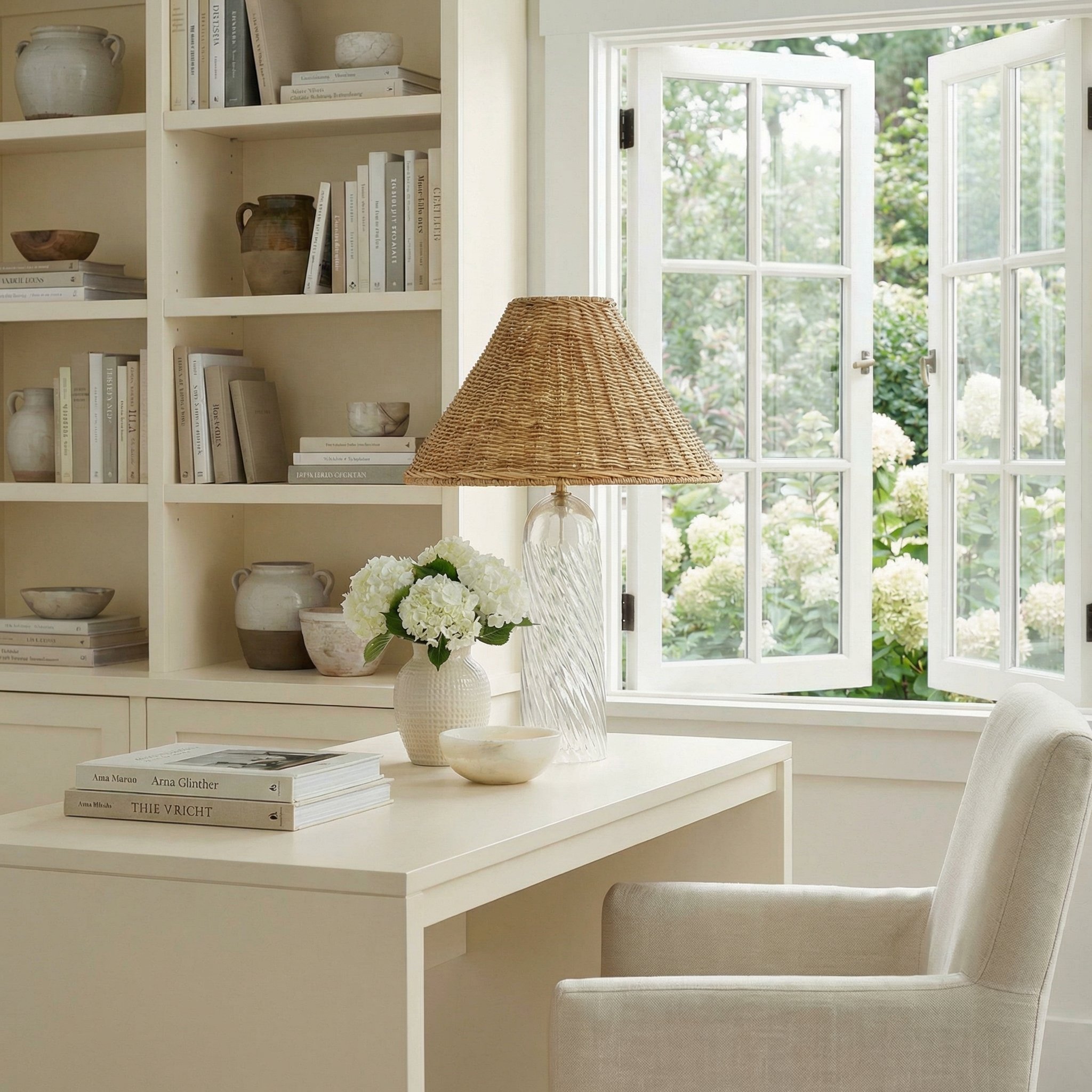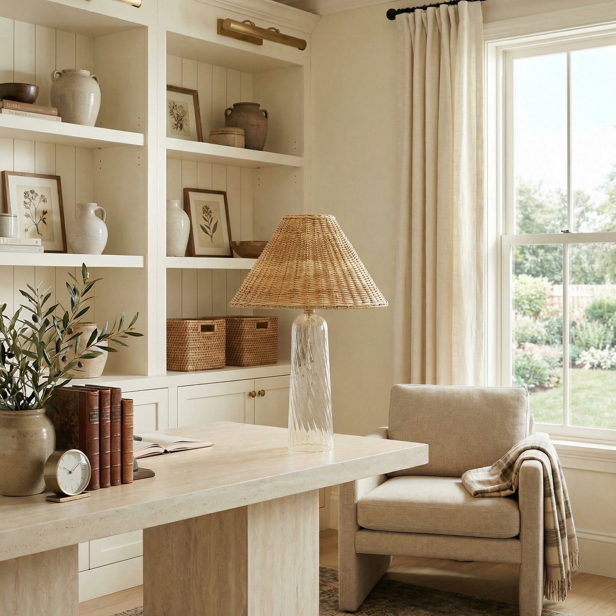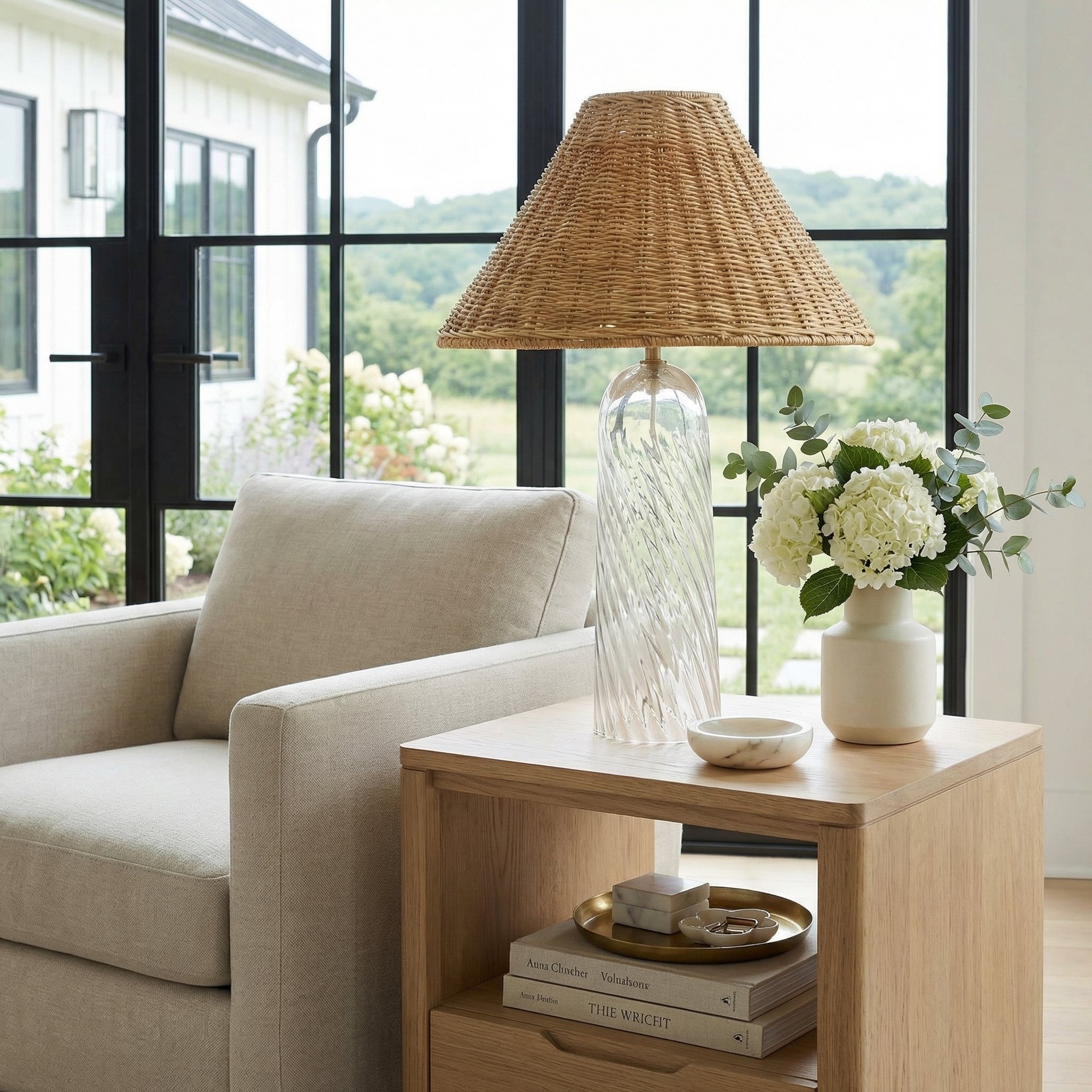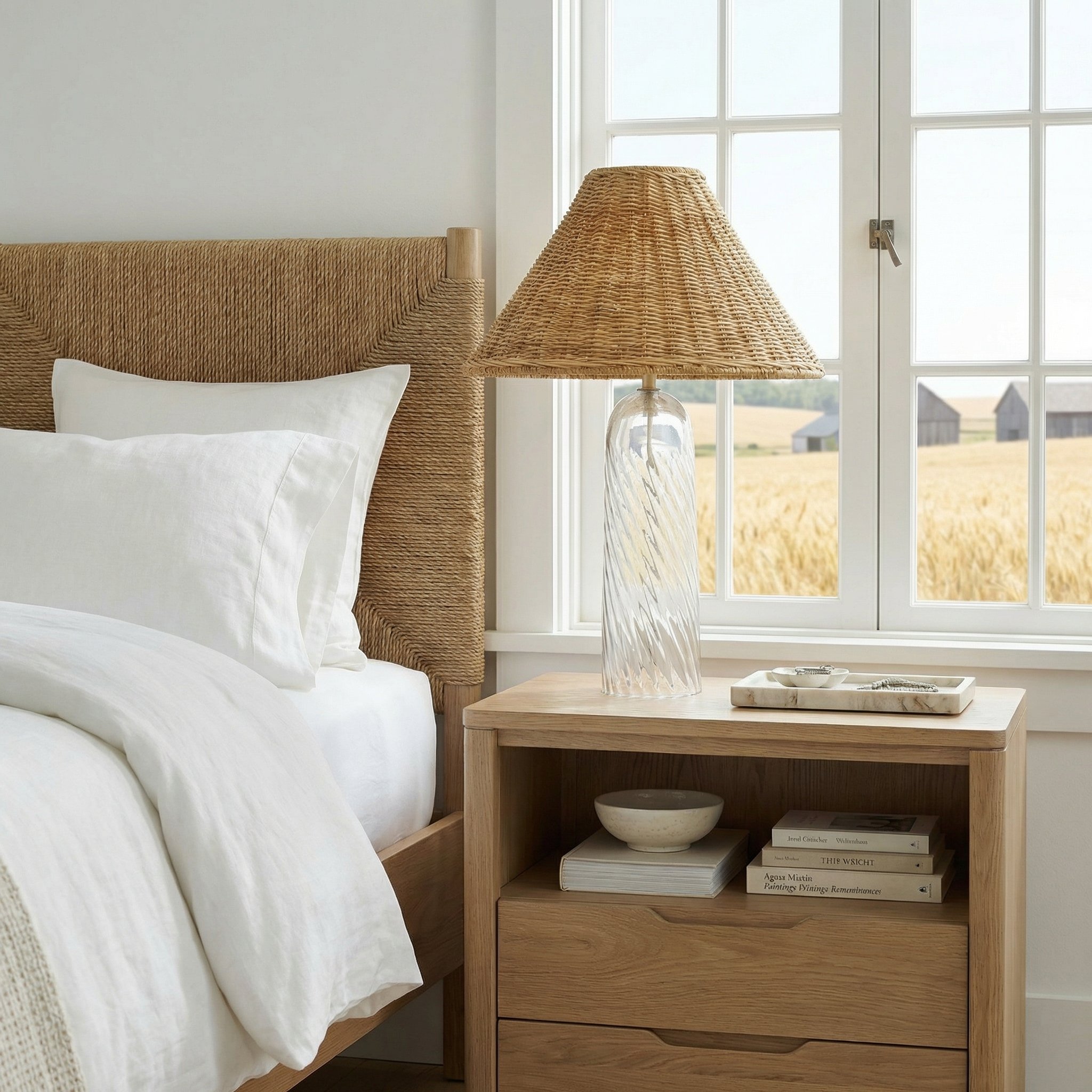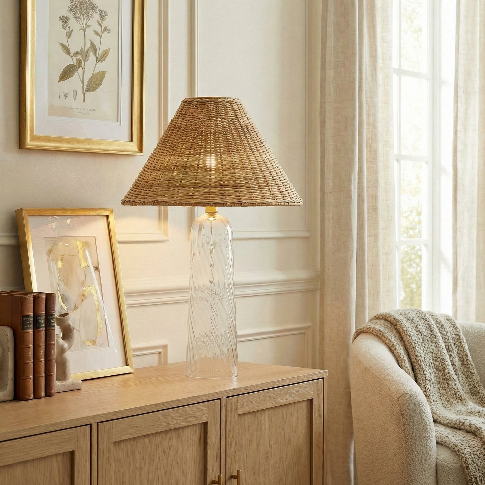 Gunner Boho Natural Rattan & Clear Glass Cylindrical Table Lamp