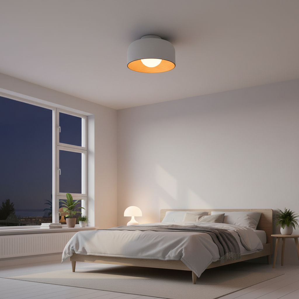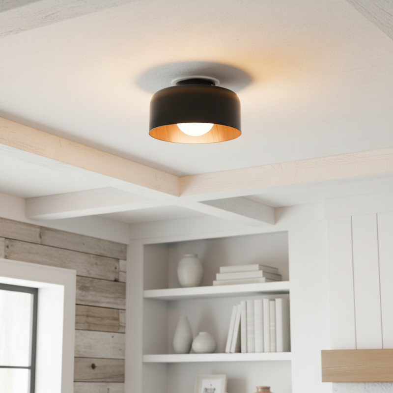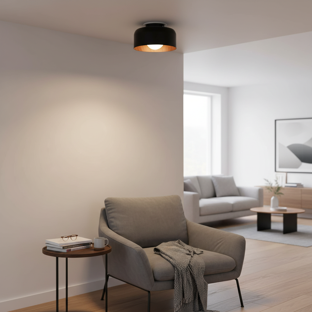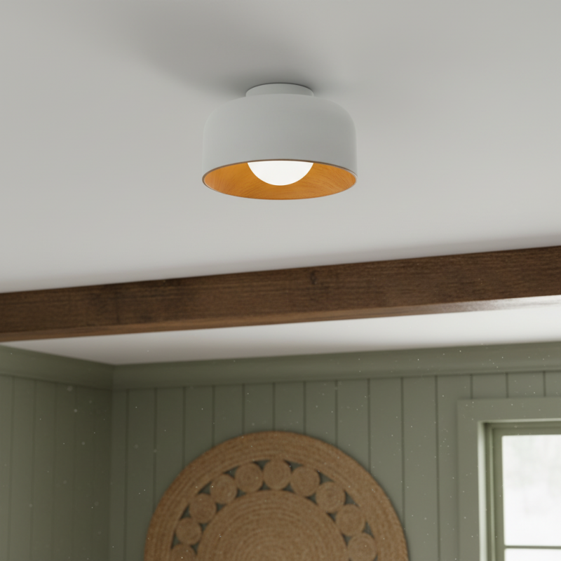 The Modern Round Wood-Incorporated Flush Mount Ceiling Fixture boasts a sleek round design. It combines a metal ceiling lamp body with wood grain hydrographics (in Black & Walnut or White & Wood). As modern flush mount ceiling light fixtures, they bring a mid-century charm to living rooms, dining rooms or bedrooms.