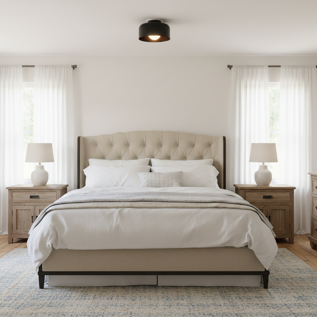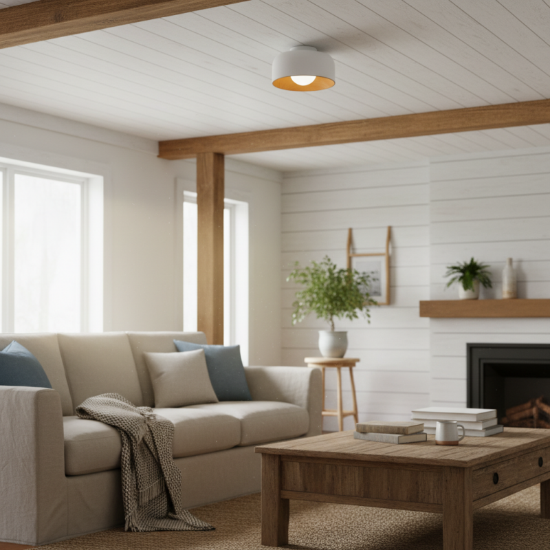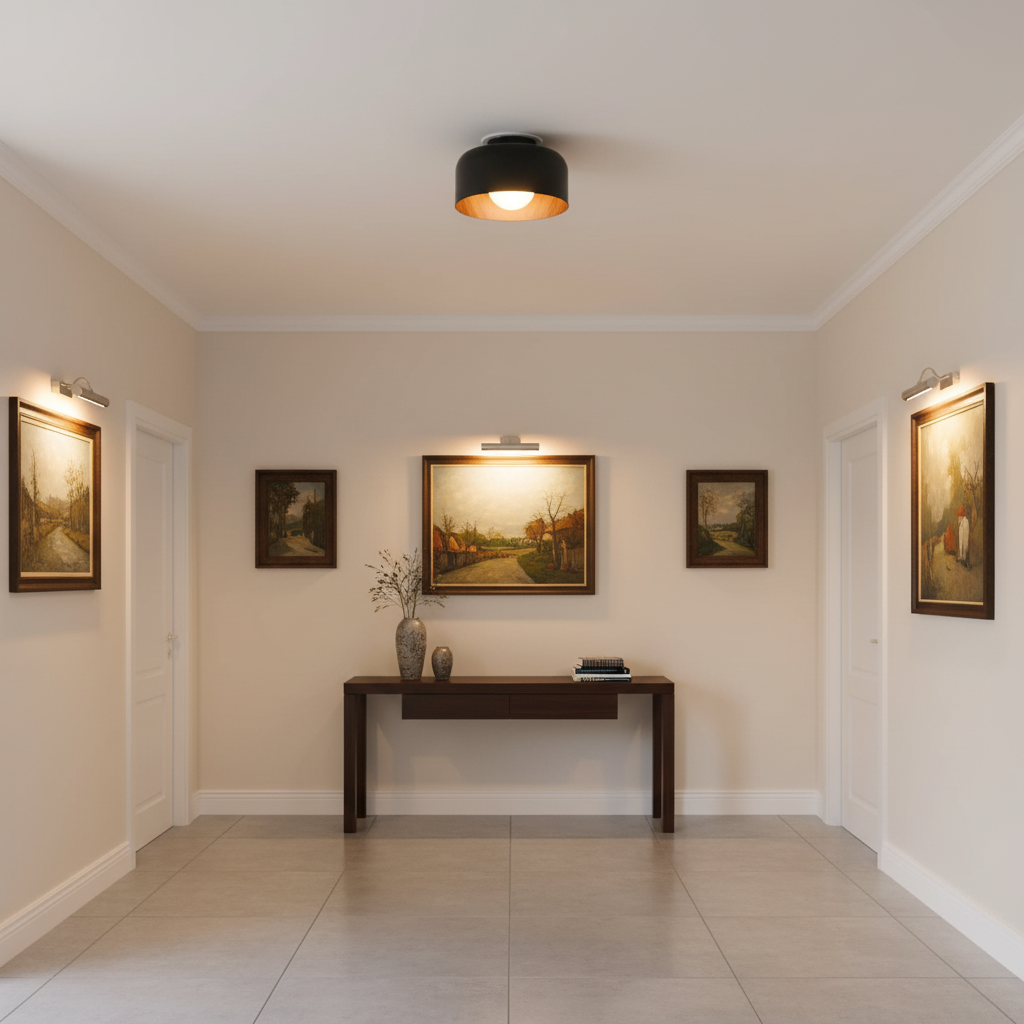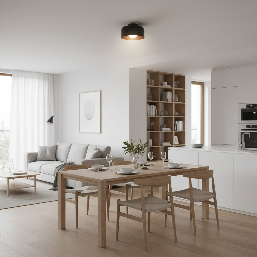 The Modern Round Wood-Incorporated Flush Mount Ceiling Fixture boasts a sleek round design. It combines a metal ceiling lamp body with wood grain hydrographics (in Black & Walnut or White & Wood). As modern flush mount ceiling light fixtures, they bring a mid-century charm to living rooms, dining rooms or bedrooms.