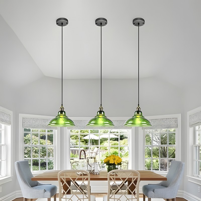 Offering vibrant green or amber hand-blown glass shades, blending rustic charm with modern style via a retro brass base. Perfect for bedroom/living room/entryway/dining room/kitchen island/coffee shop/restaurant, it’s both stylish and functional.