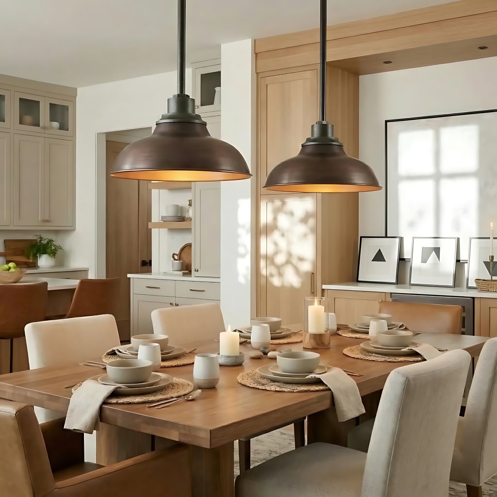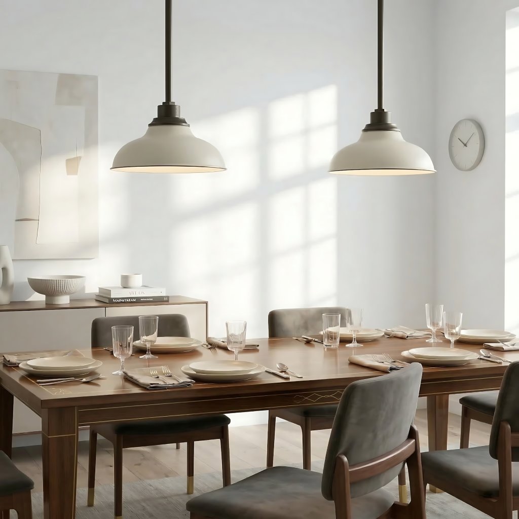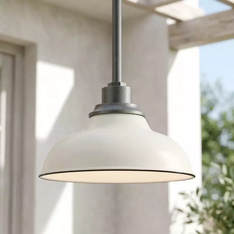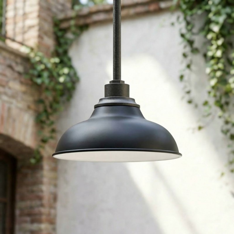 This Industrial Dome Metal Outdoor Pendant Light is crafted from metal with a durable aluminum build. Its dome design suits outdoor spots like farms and rustic areas, and it also fits well in indoor spaces such as kitchens and dining rooms. A versatile industrial pendant light for various rooms.