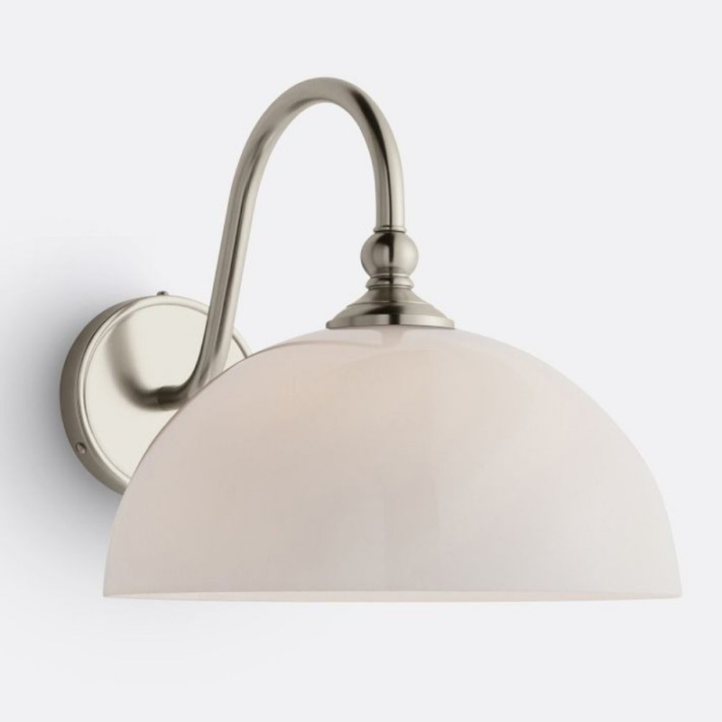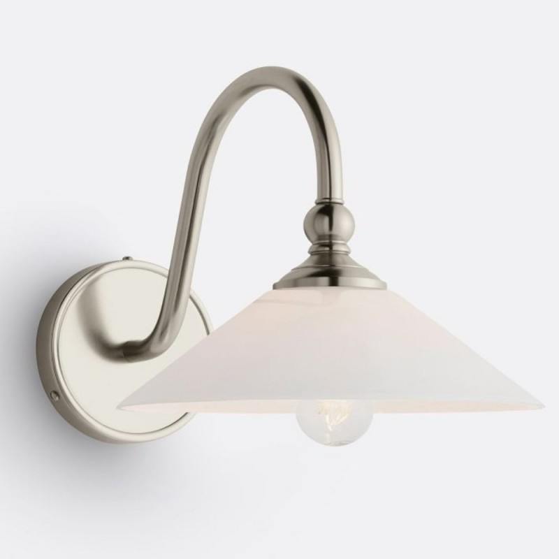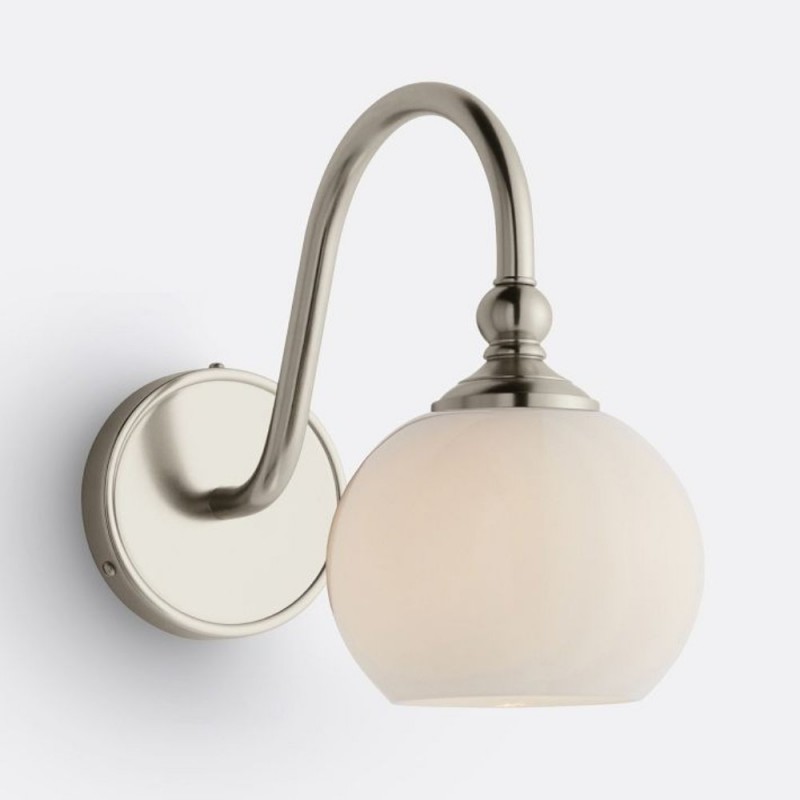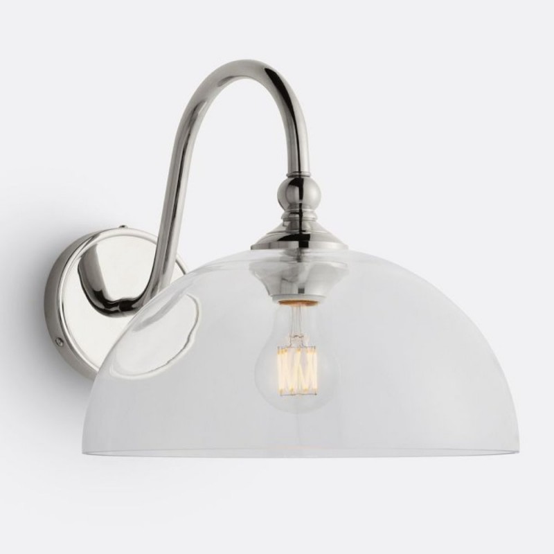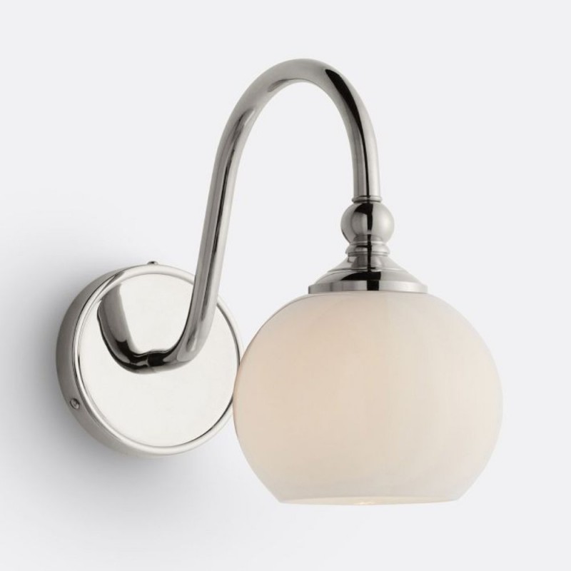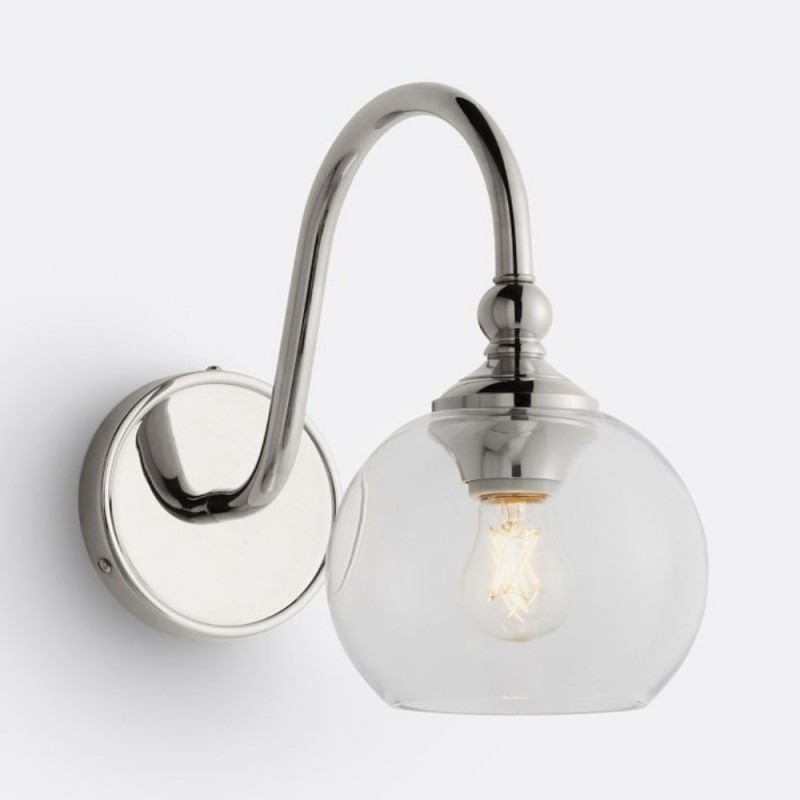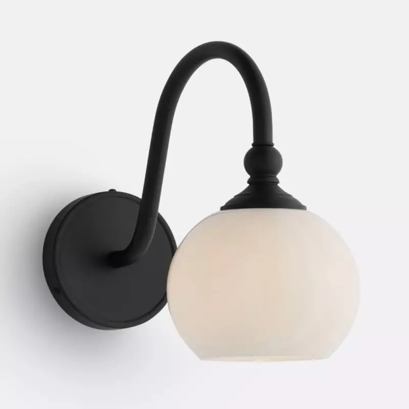 This wall sconce showcases a gracefully curved brass arm paired with a smooth glass shade, capturing vintage character with refined elegance. Its softly diffused glow creates a warm, welcoming ambiance—perfect for hallways, bedrooms, and bathrooms.