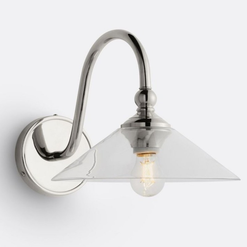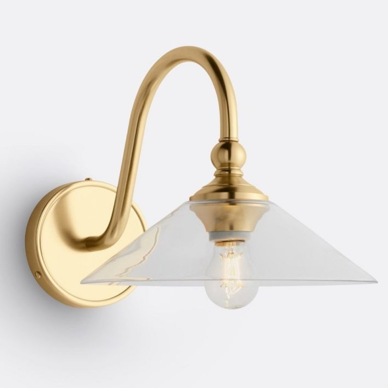Cygnira Vintage Brass Glass Curved Neck Wall Light