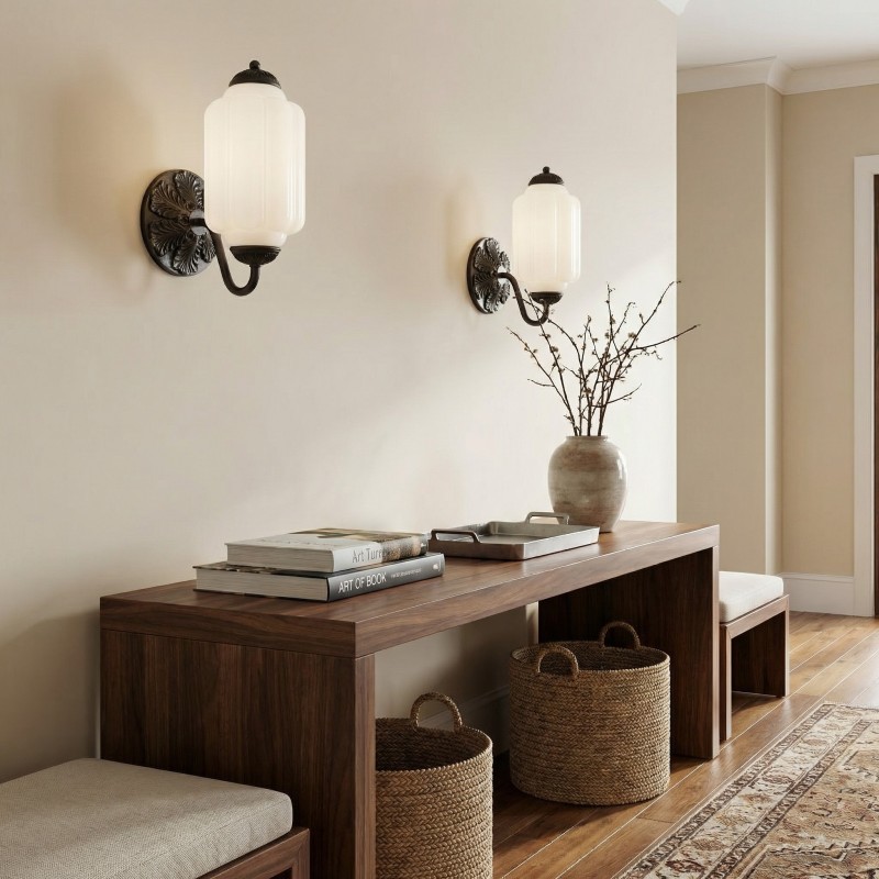Boasting a milk glass shade and polished brass hardware, this Vintage-Style1 Light Hallway Wall Lights exudes feminine elegance.Blends seamlessly with French country, Art Deco, and vintage farmhouse interiors.Perfect for creating cozy nooks, bedside elegance, or a nostalgic hallway touch...