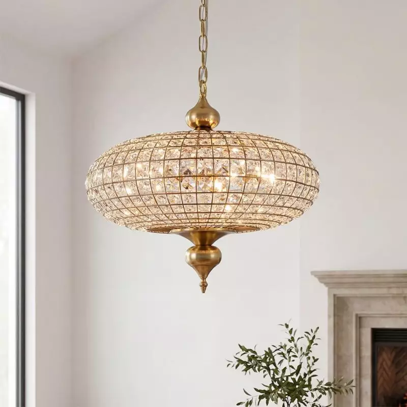 Dion Luxury Antique Brass French Country Crystal Large Chandelier