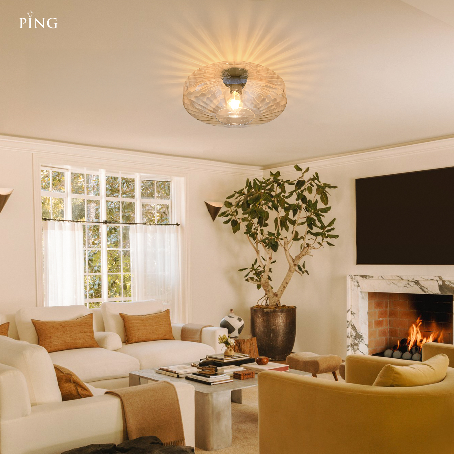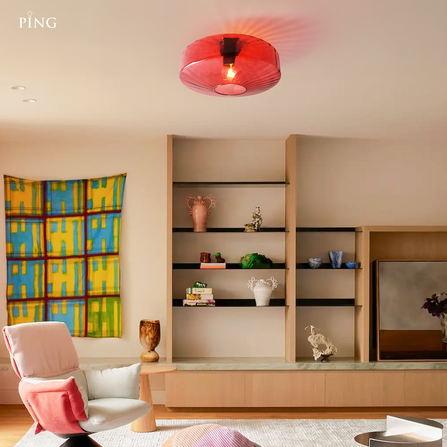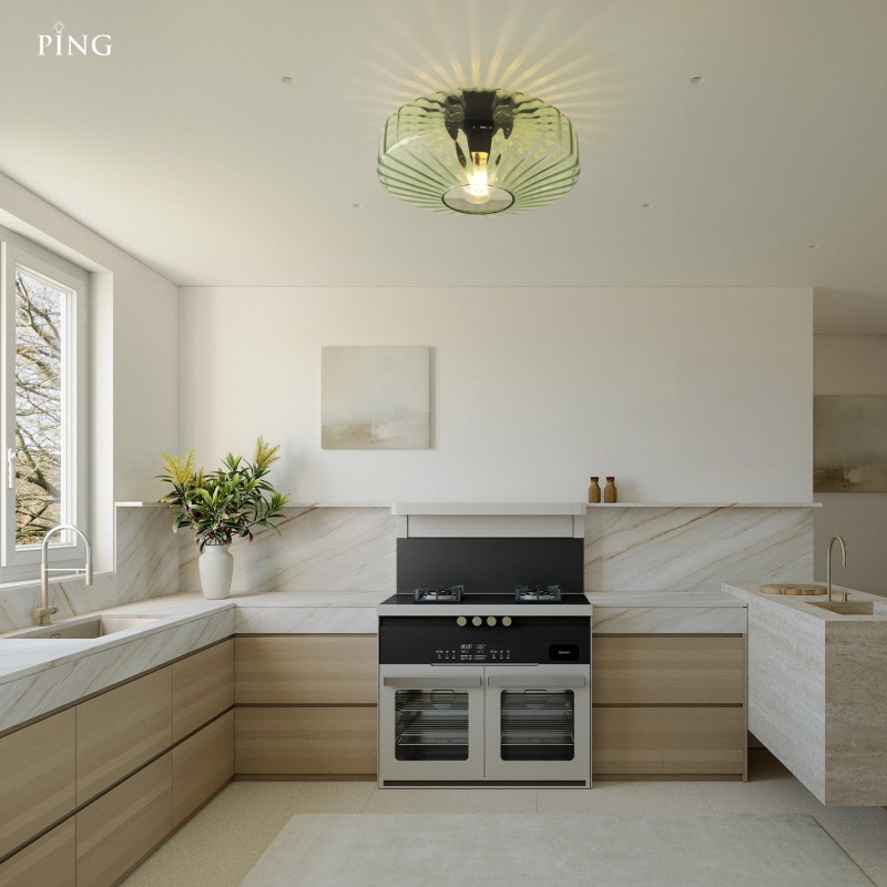 Ember Vintage Multi Color Water Ripple Glass Ceiling Light