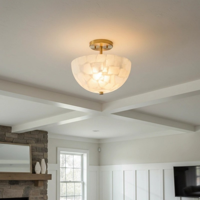 Faeluna Modern Alabaster Round Ceiling Light