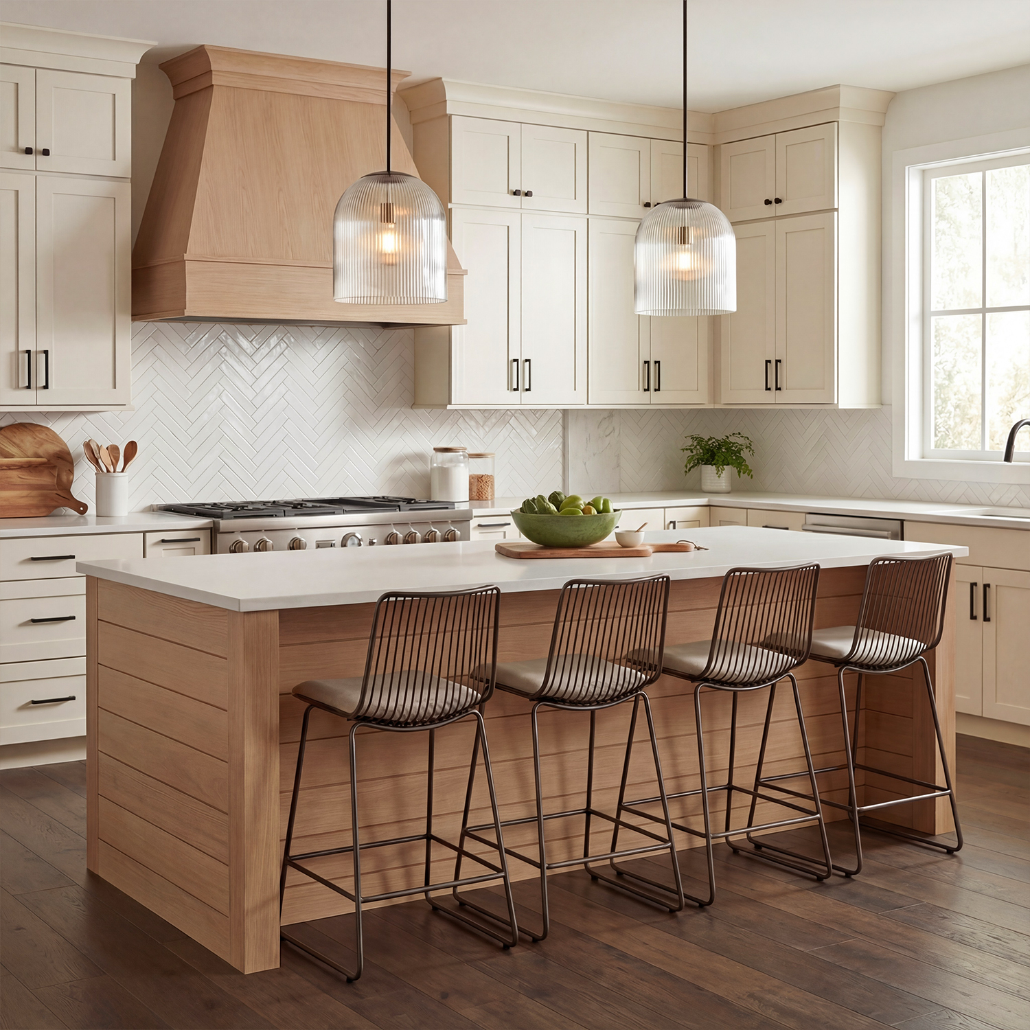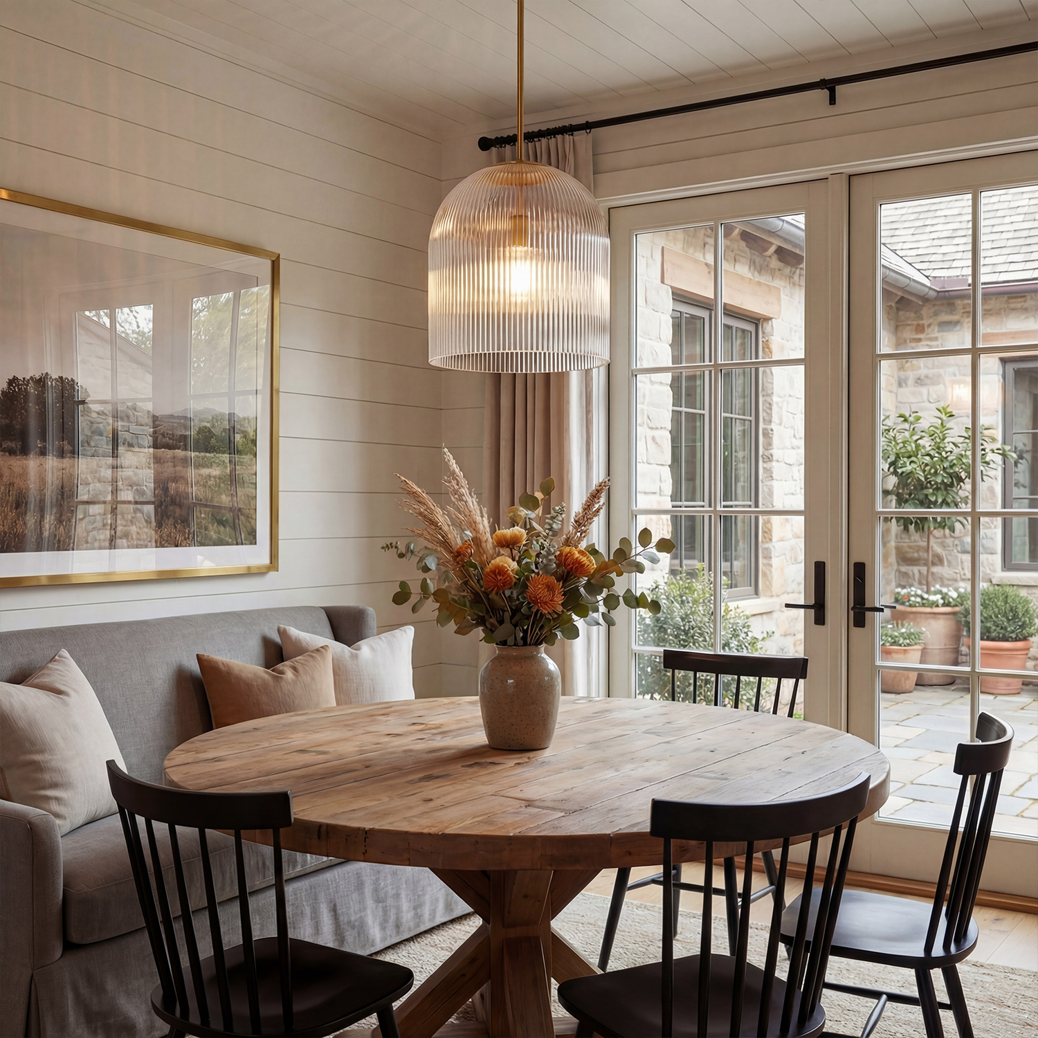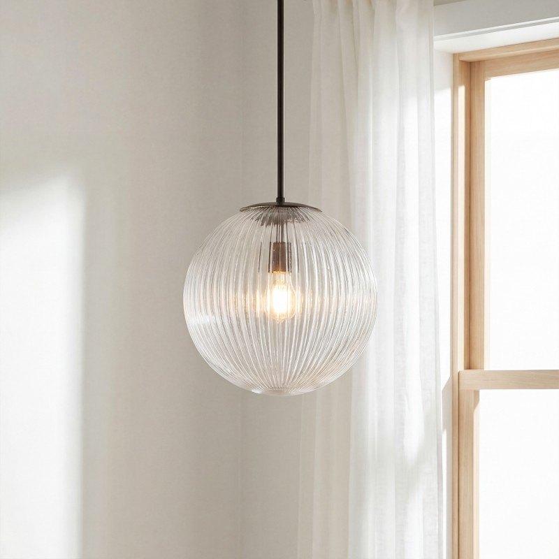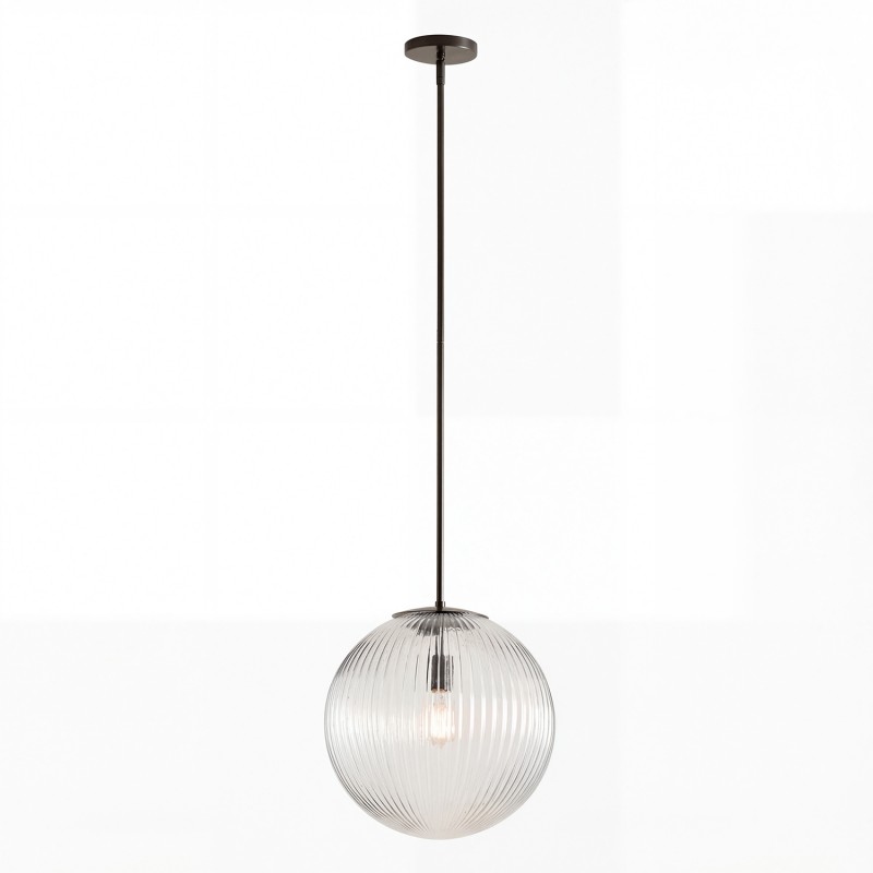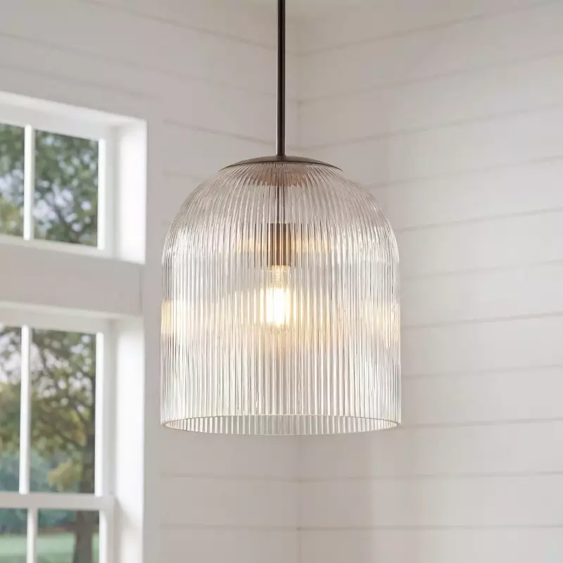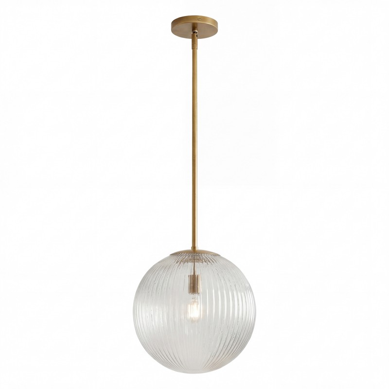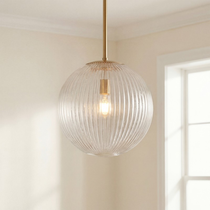 Alain Farmhouse Cooper Ribbed Glass Pendant Light