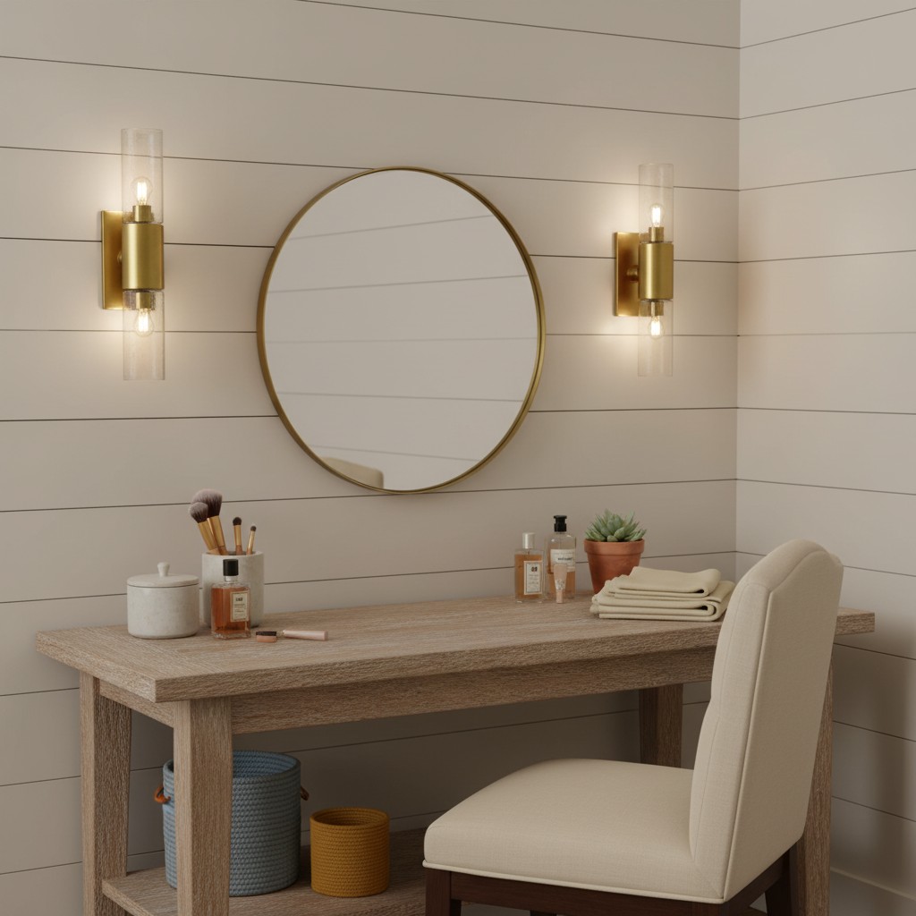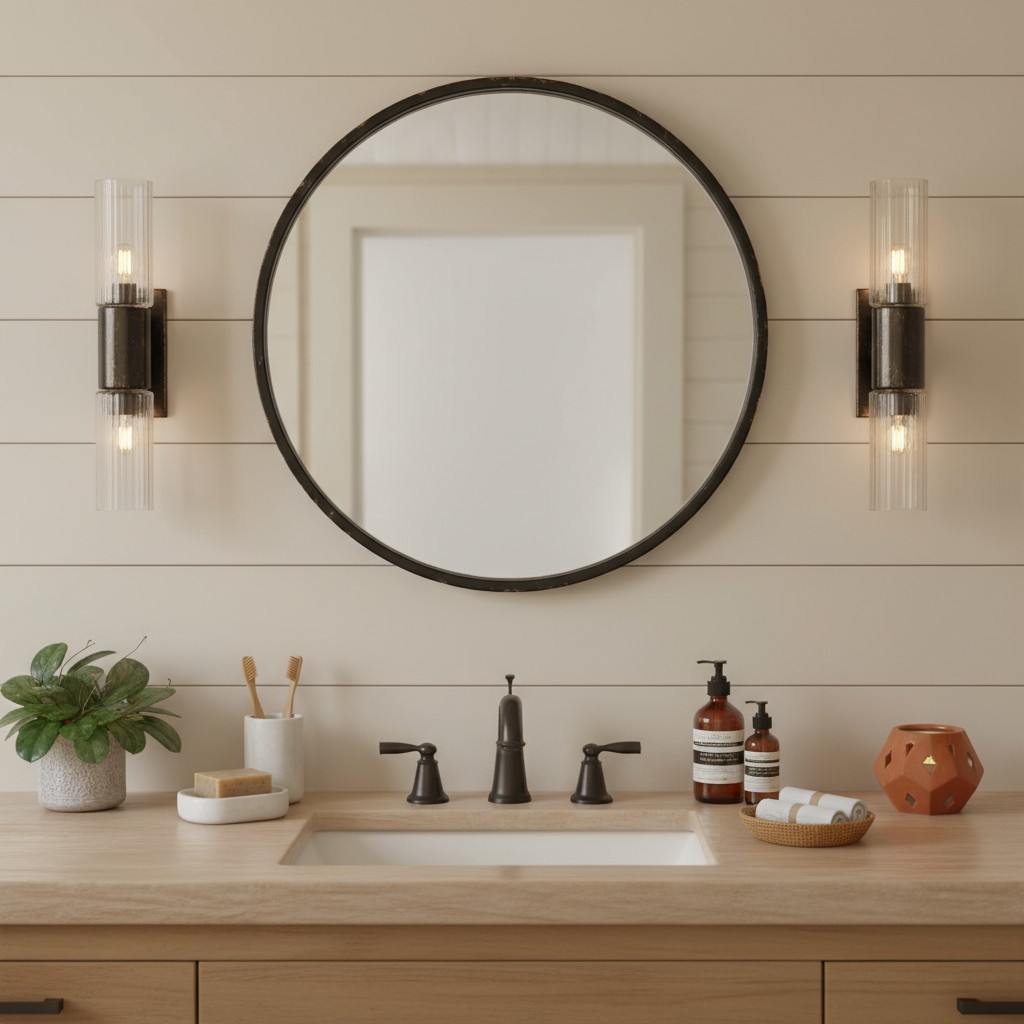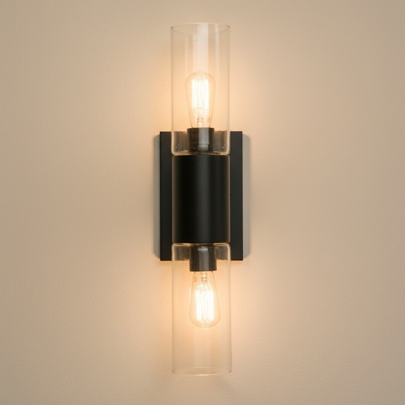 Our Farmhouse Water Ripple Glass Double Tube Sconce, featuring clean geometric designs, brings a rustic charm to the bathroom. Its versatile finishes and subtle industrial touch allow it to coordinate seamlessly with other fixtures in the collection.
