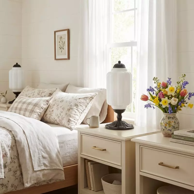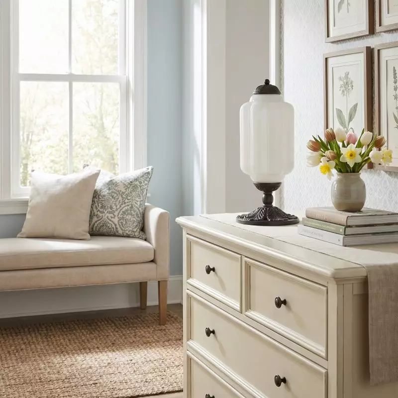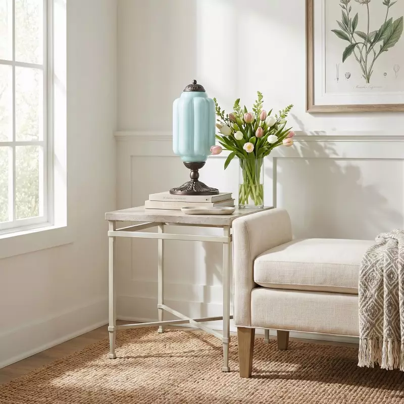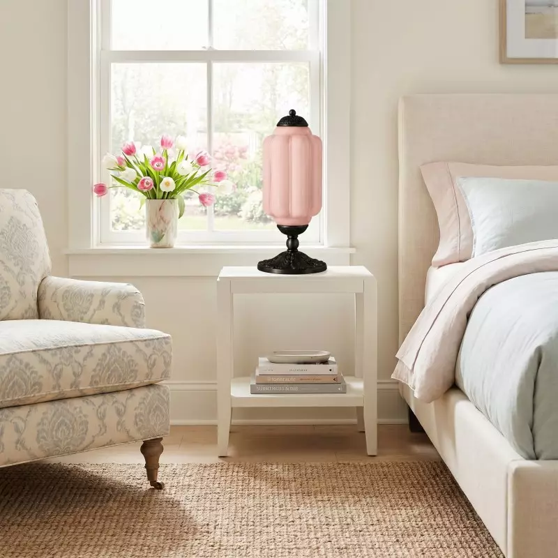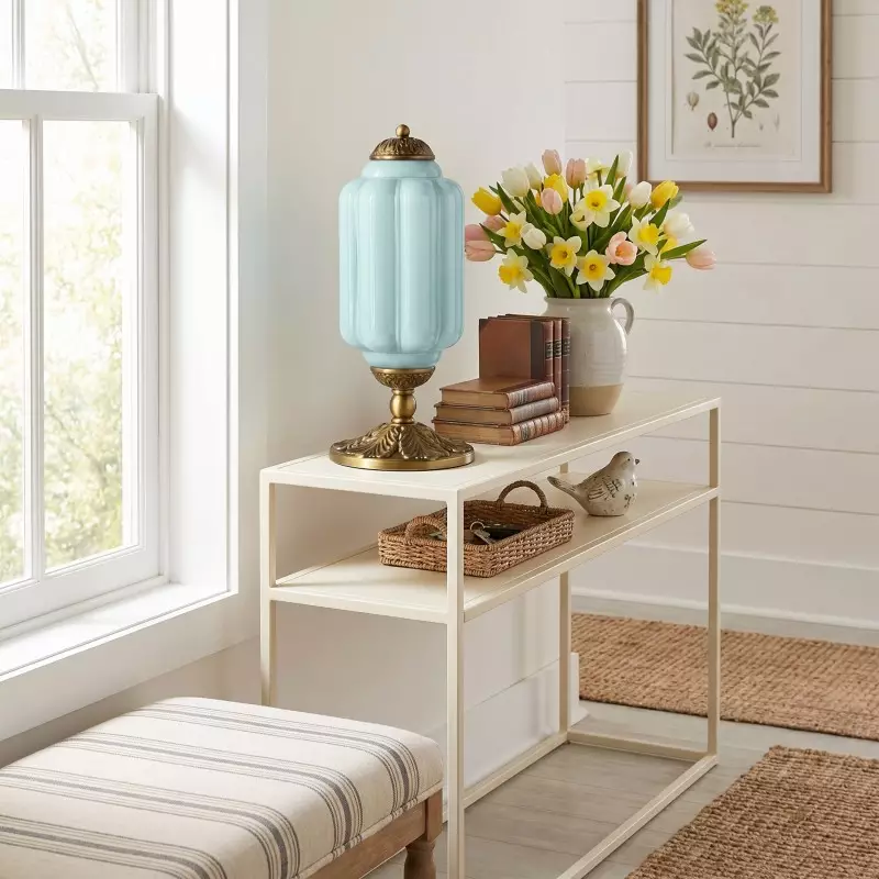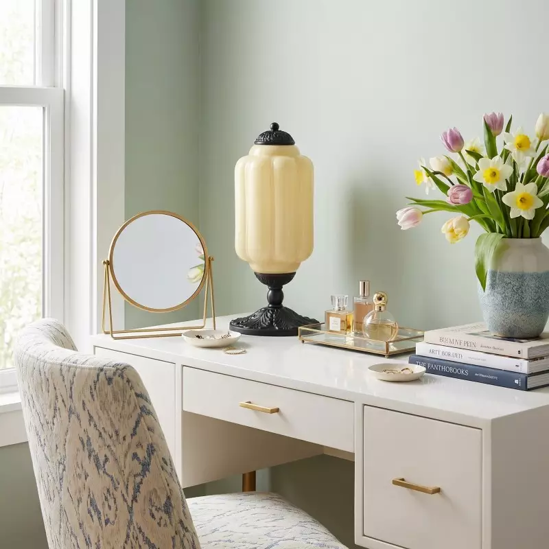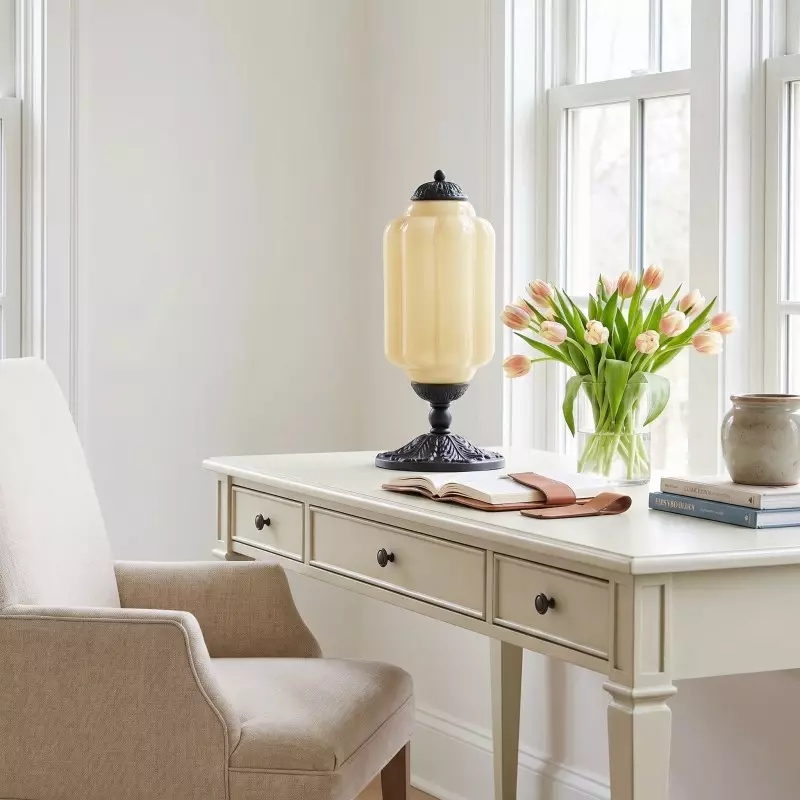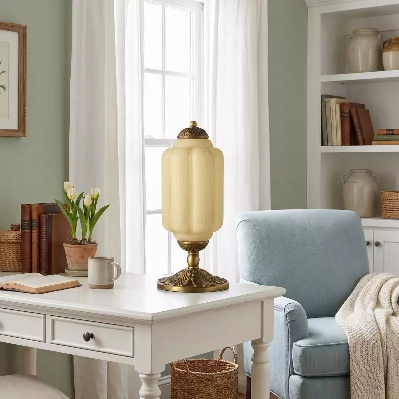 Nexos French Retro Cream Glass Textured Eloise Table Lamp