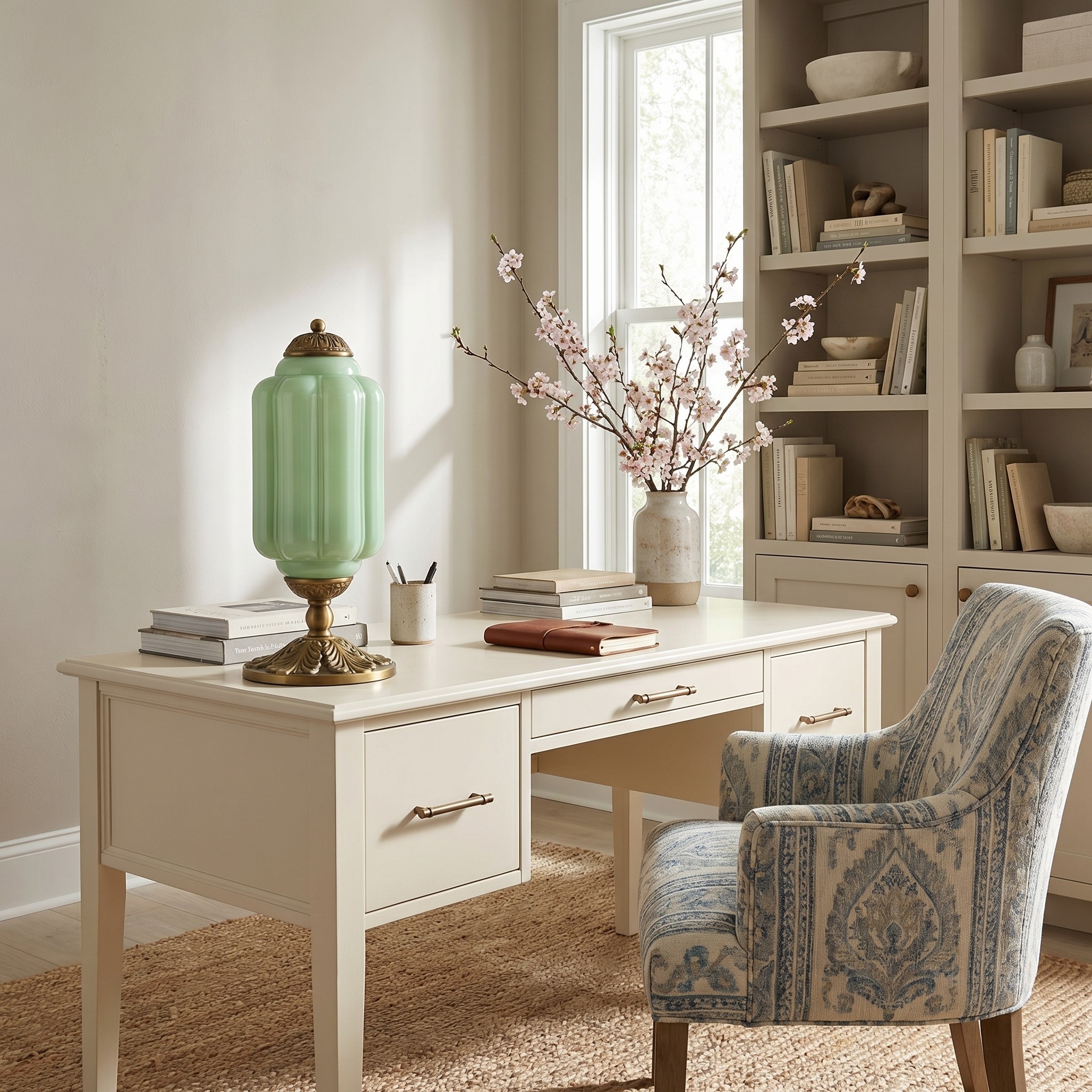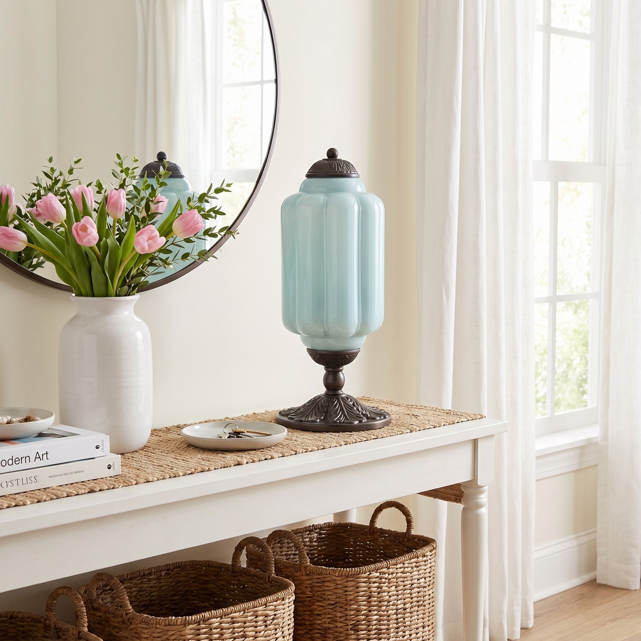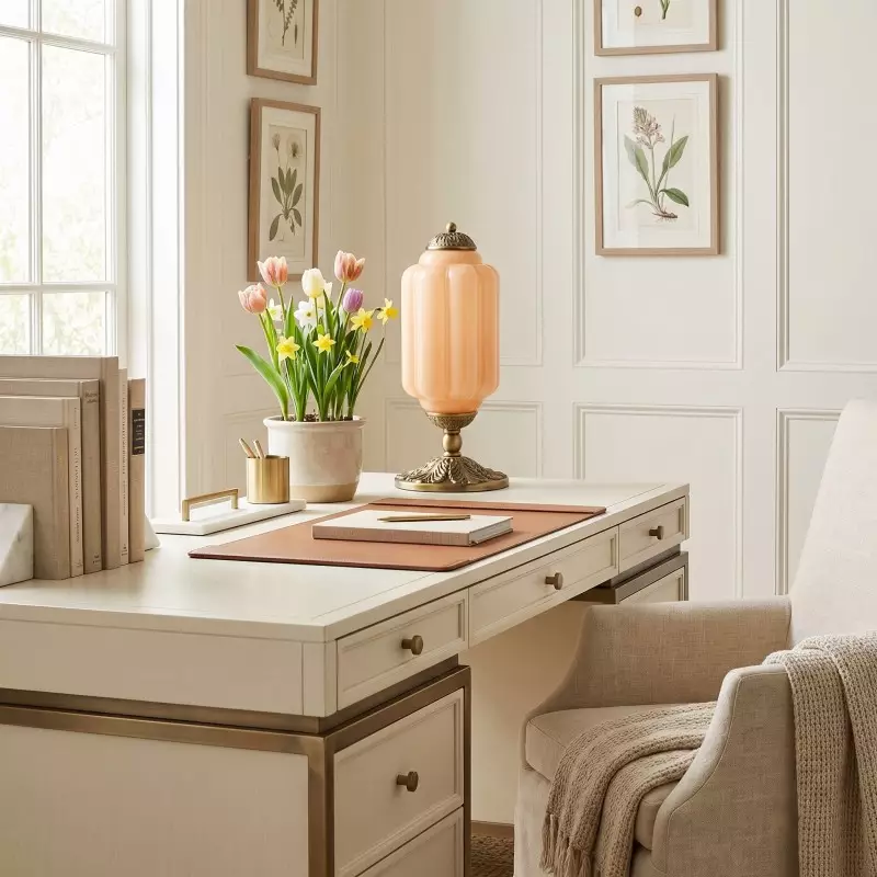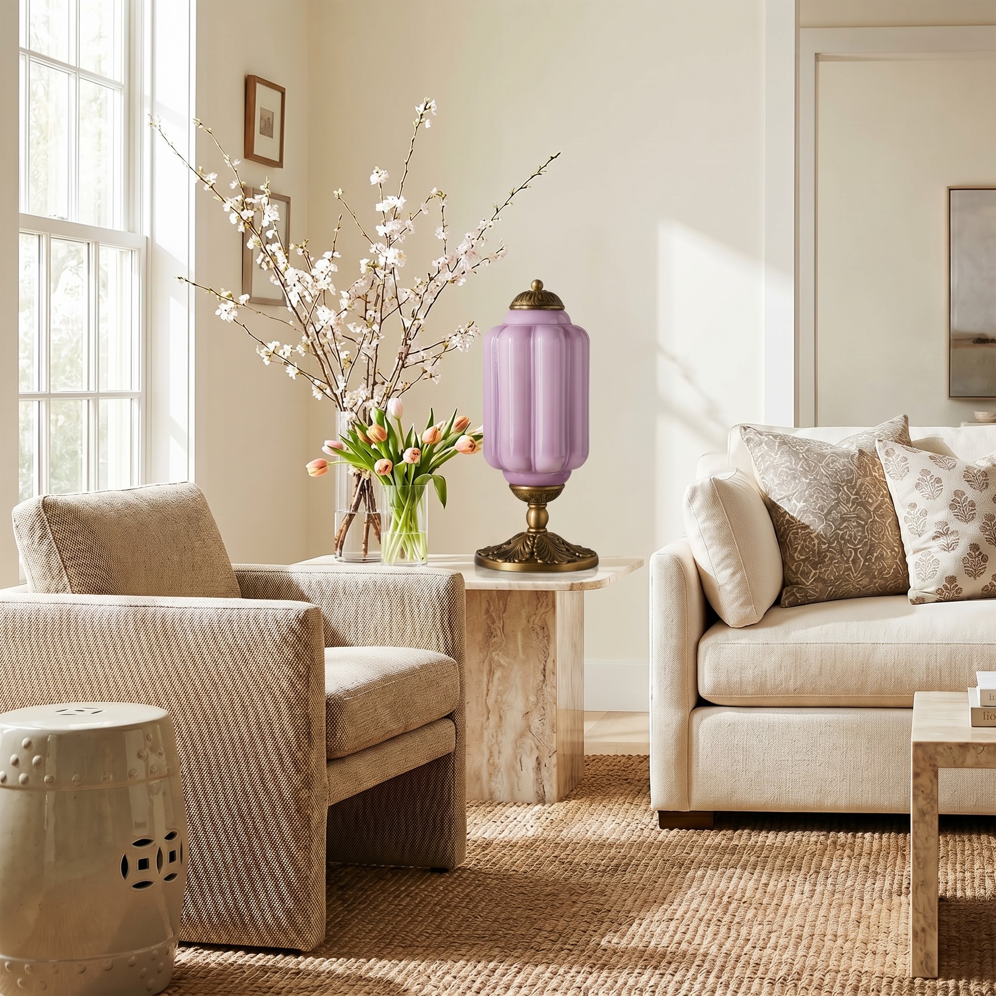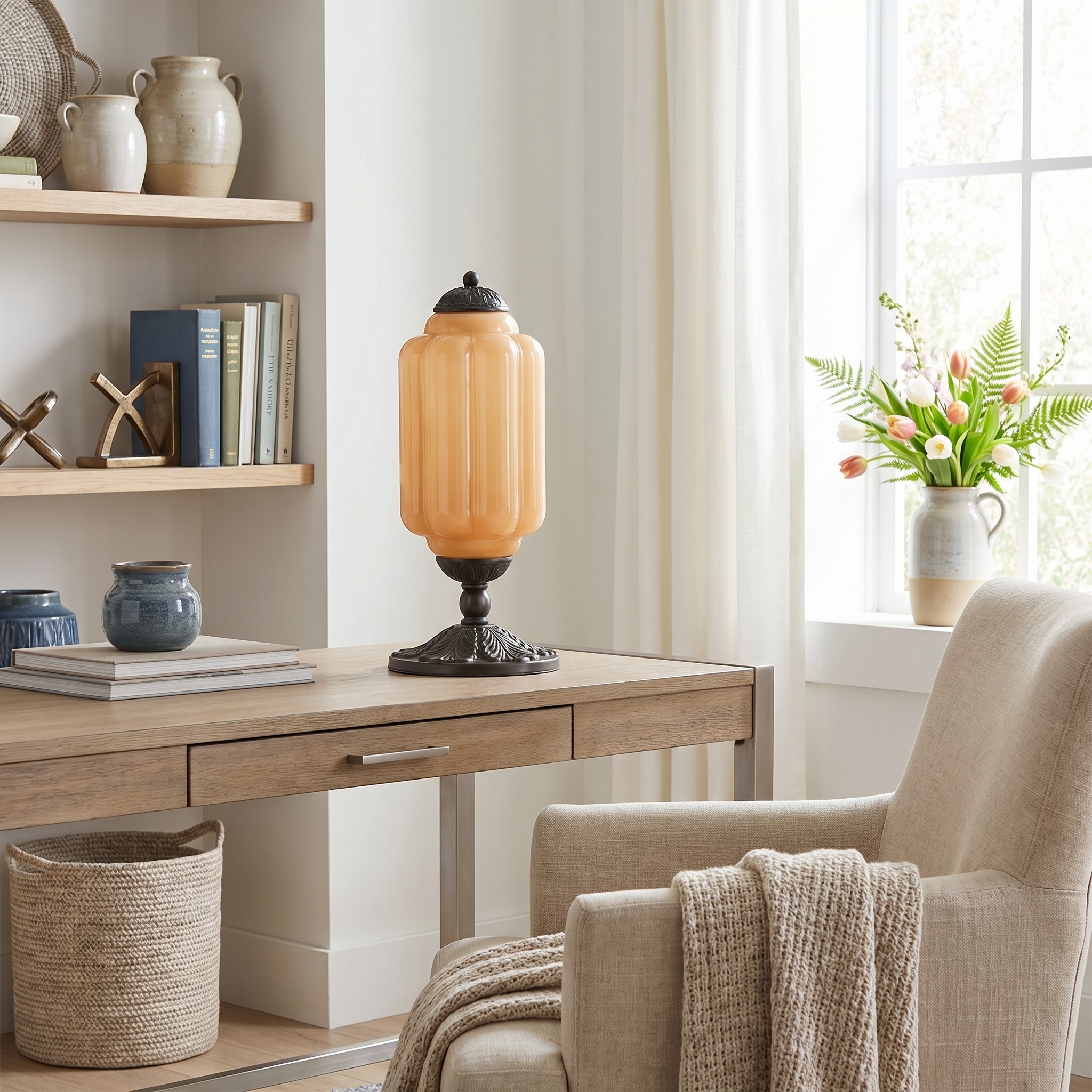 Nexos French Retro Cream Glass Textured Eloise Table Lamp
