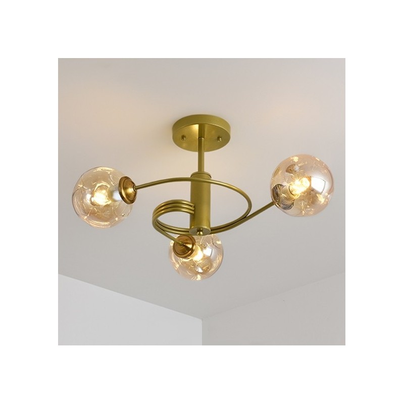 Globe Combination Chandelier features a circular body attached by glass balls like a tornado. With amber or smoky gray glass, the graceful color scheme make it eye-catching in any room. Available in two sizes and two finishes.
