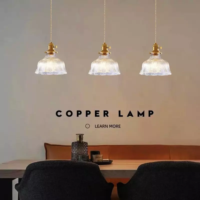 Hermin Antique Flower Ribbed Glass Pendant Light
