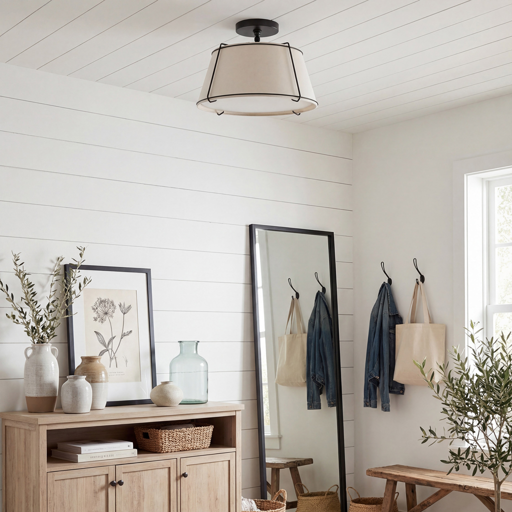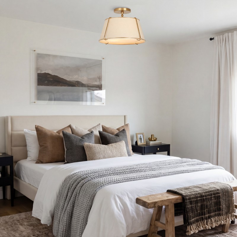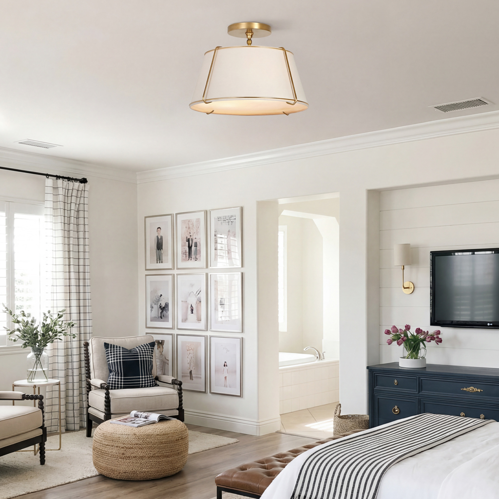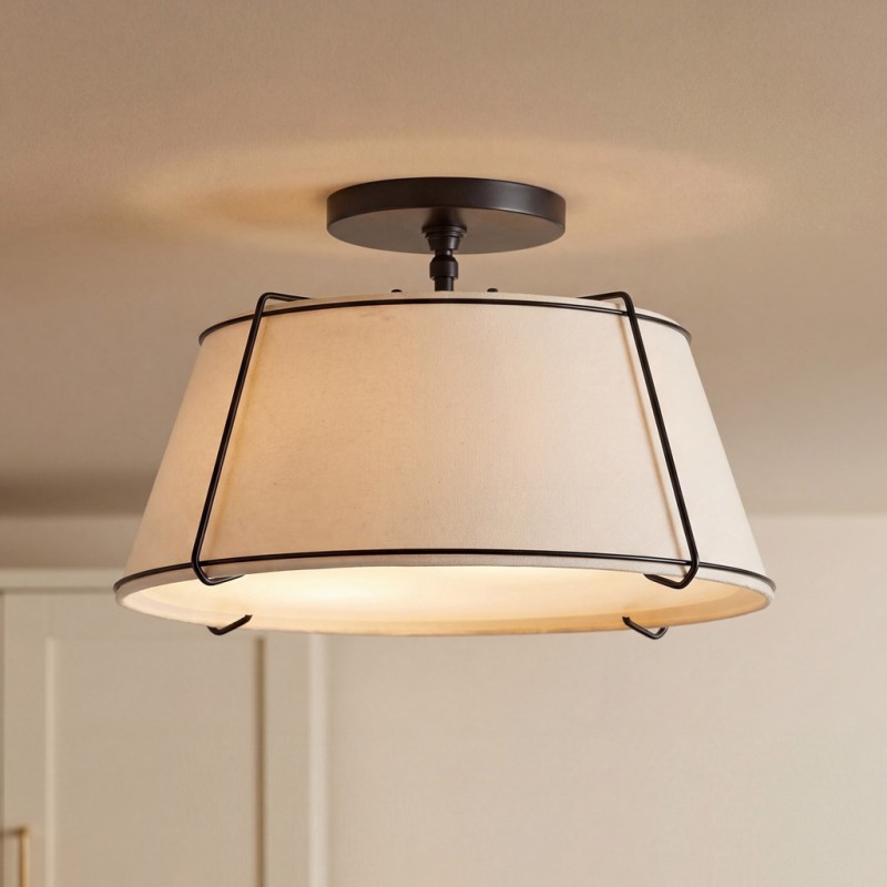 Hesperia Fabric Drum Shade Semi Flush Mount