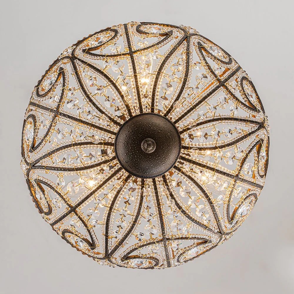 Ive Vintage Bronze Bowl 3-Light Crystal Semi Flush Ceiling Light