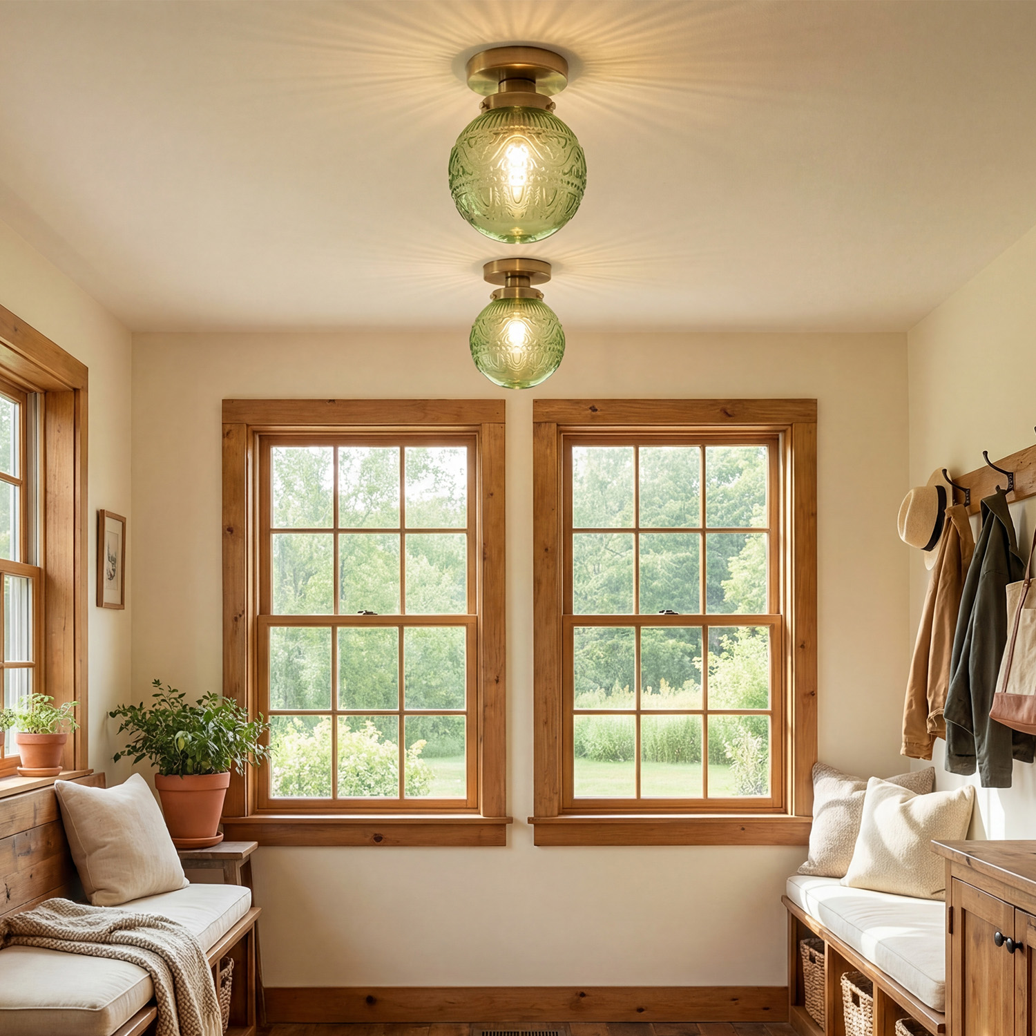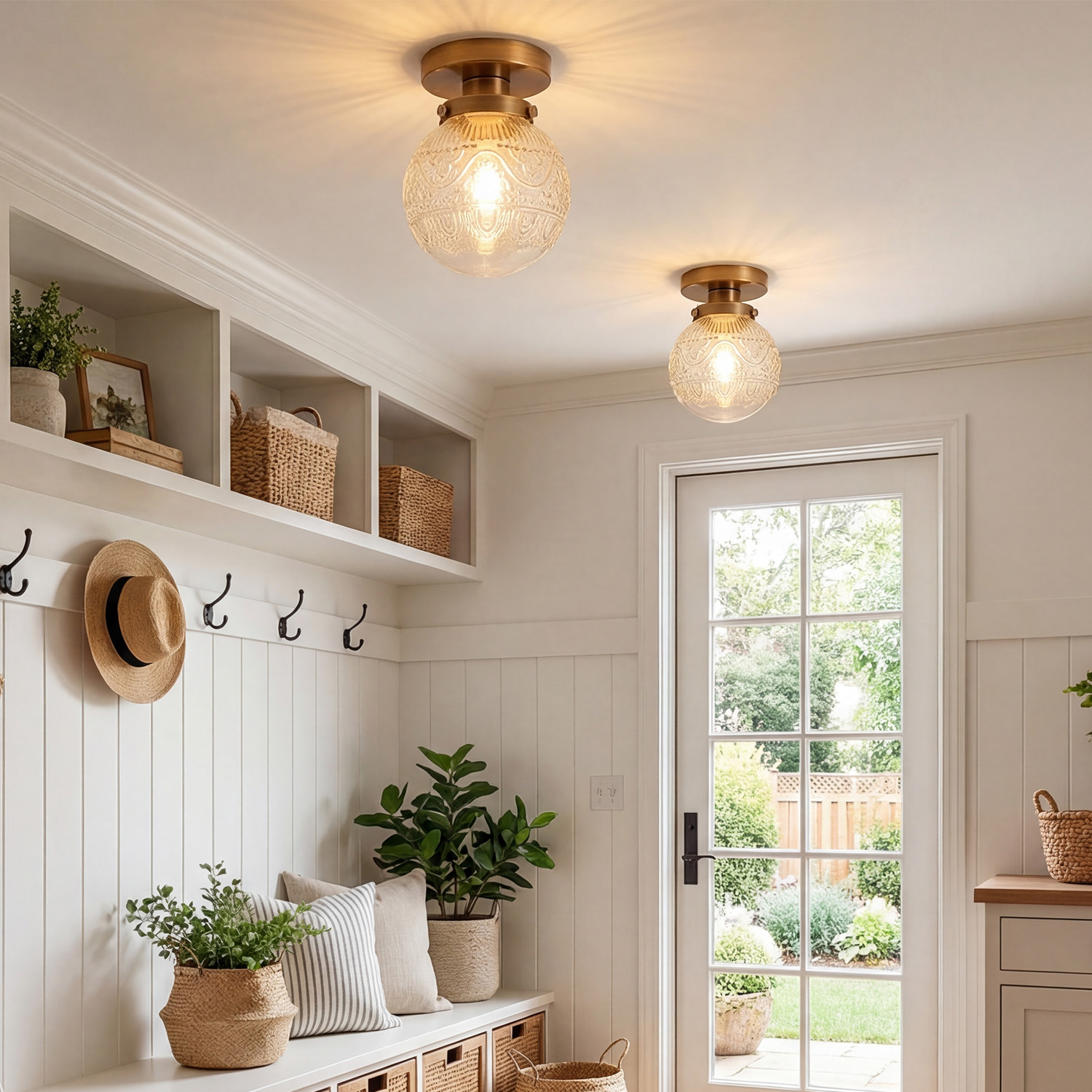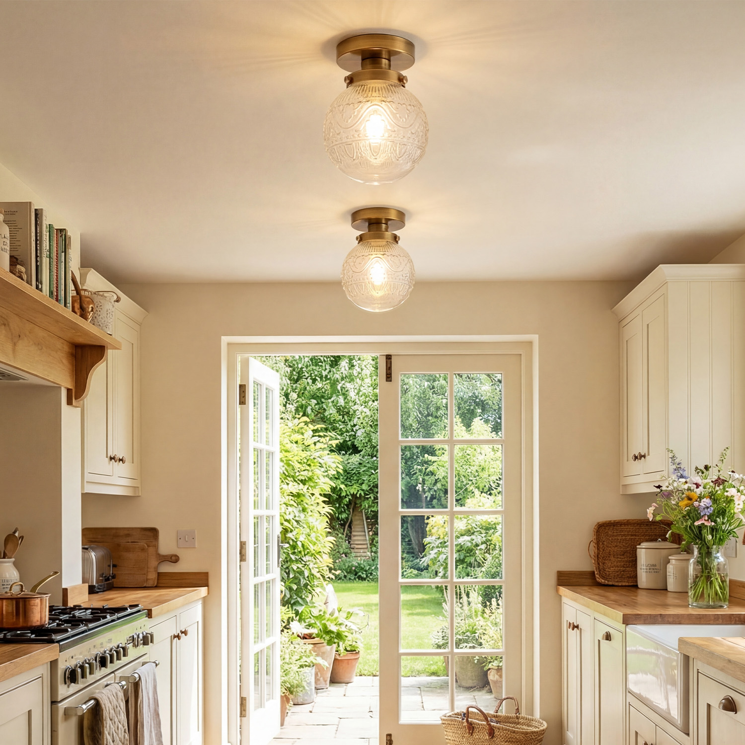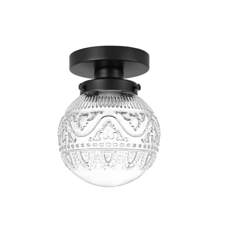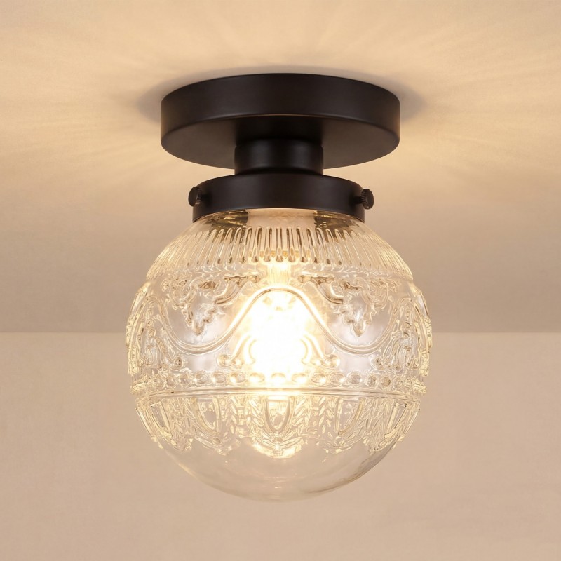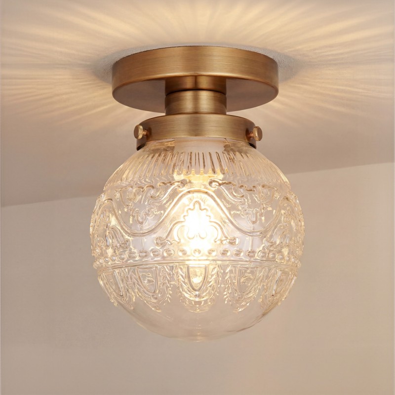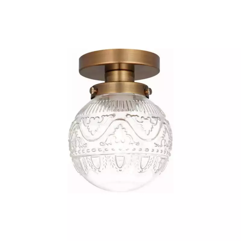 Ixionis Vintage Engraved Pattern Globe Glass Flush Mount Ceiling Light
