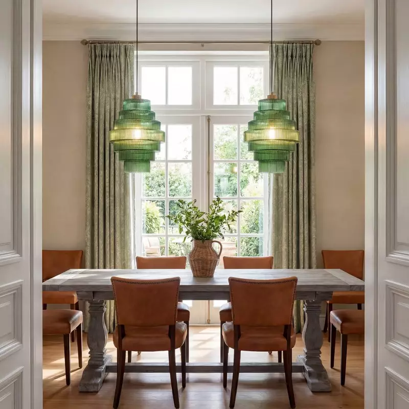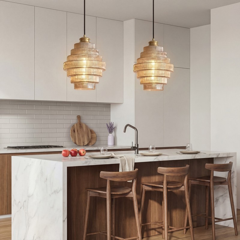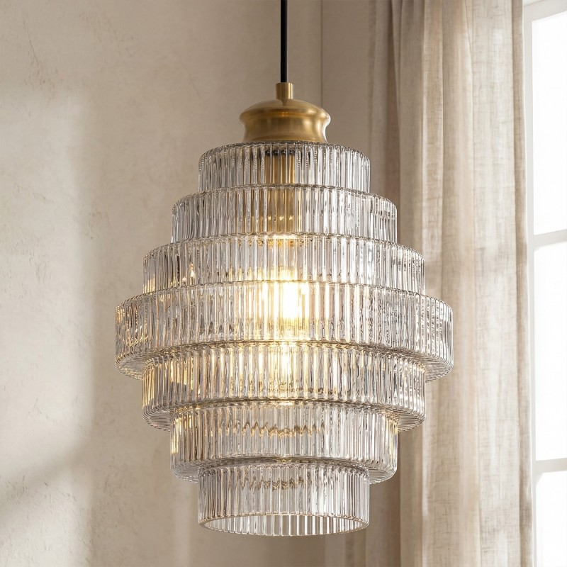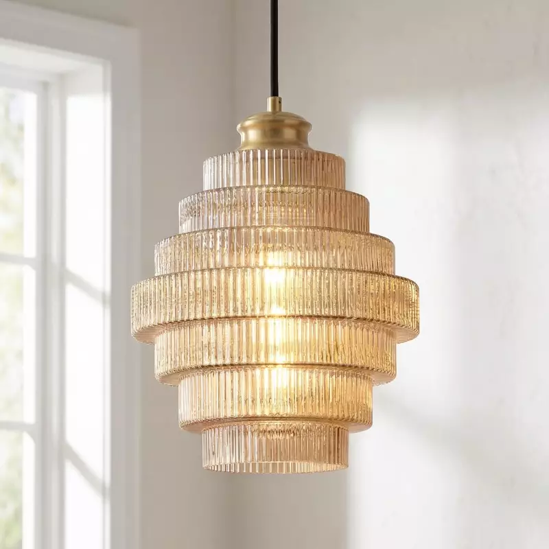 Kaelyn Bottle Shade Stained Striped Glass Pendant Light