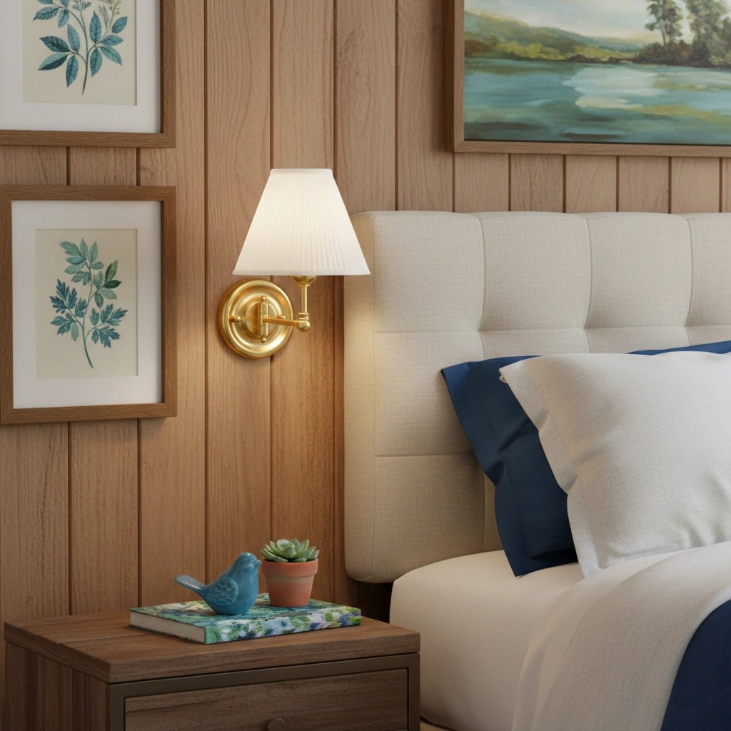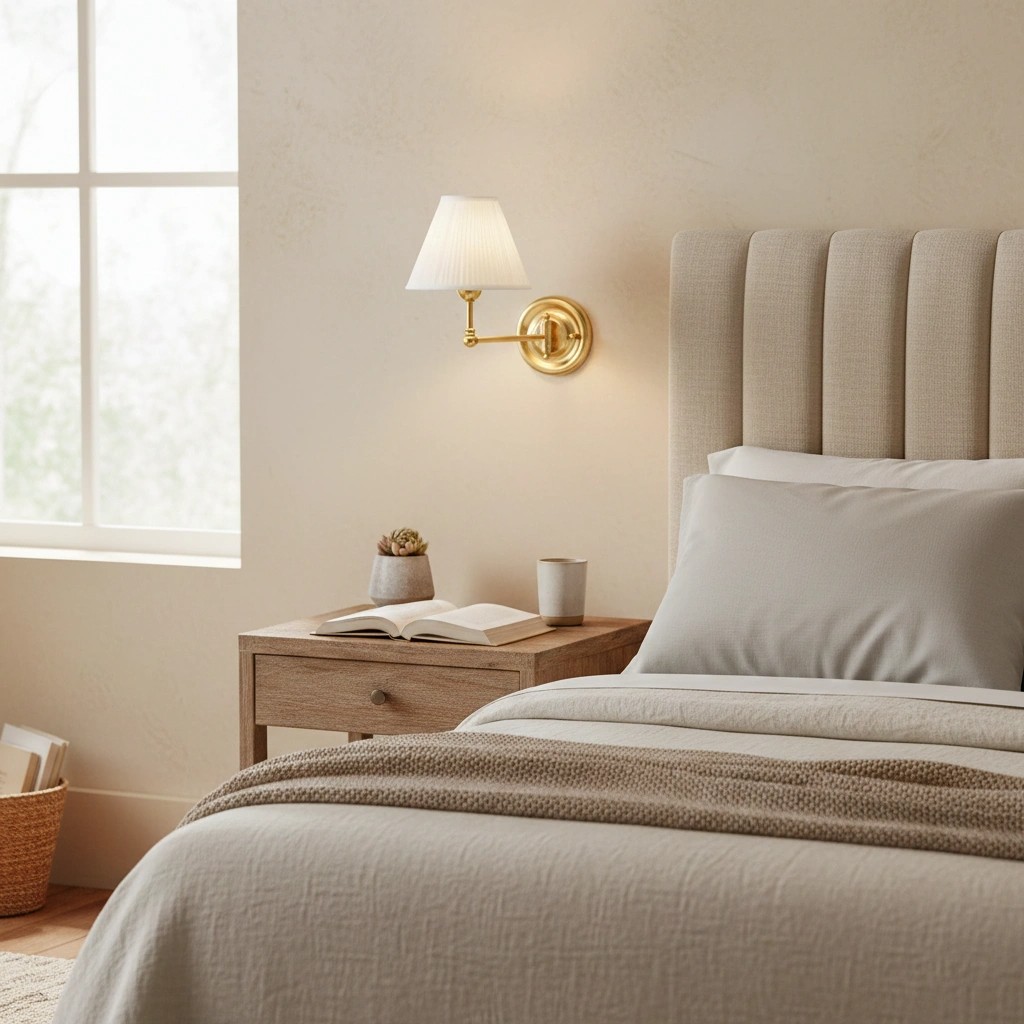 • Warm Ambient Lighting – Fabric sconce light softly diffuses illumination for a cozy, glare-free atmosphere.