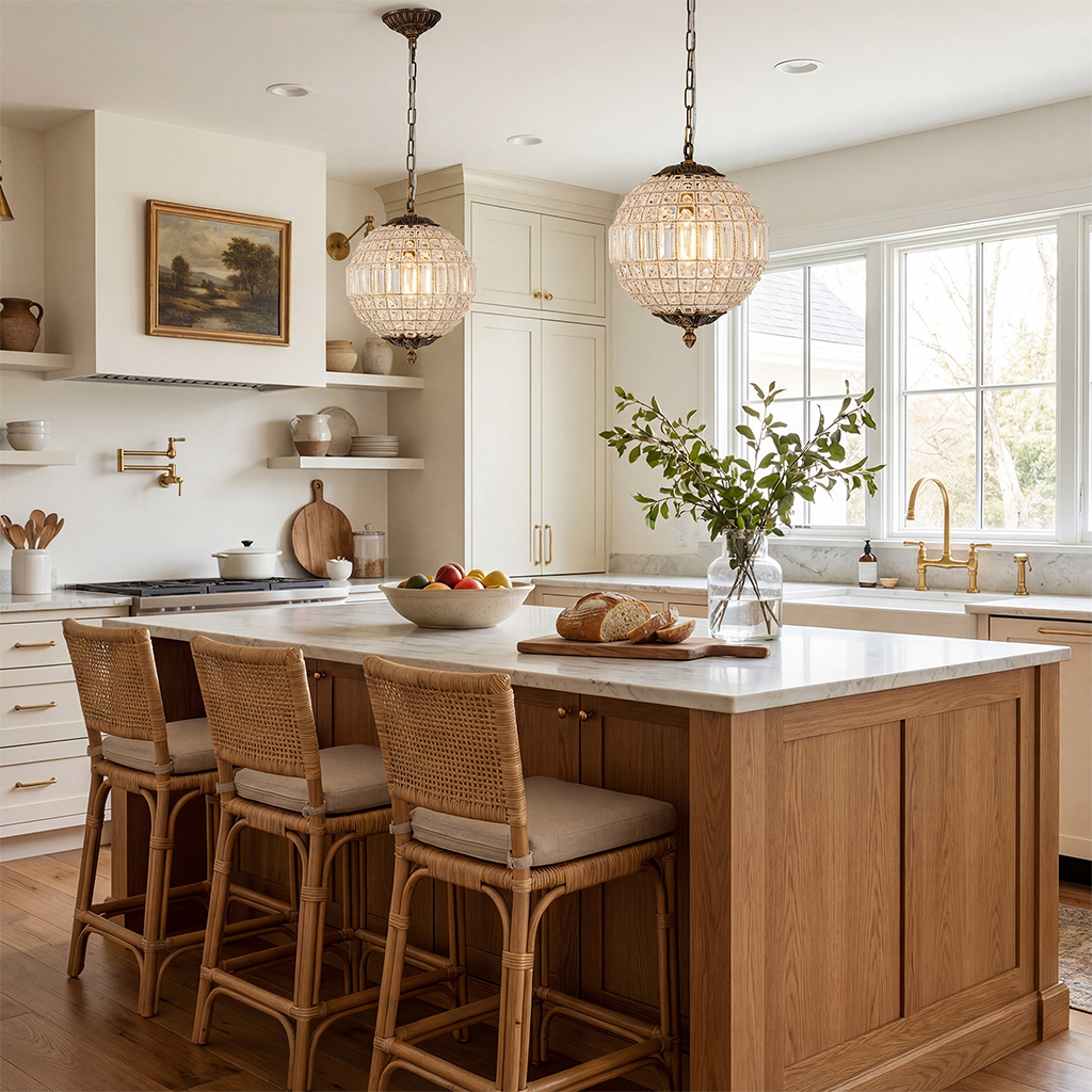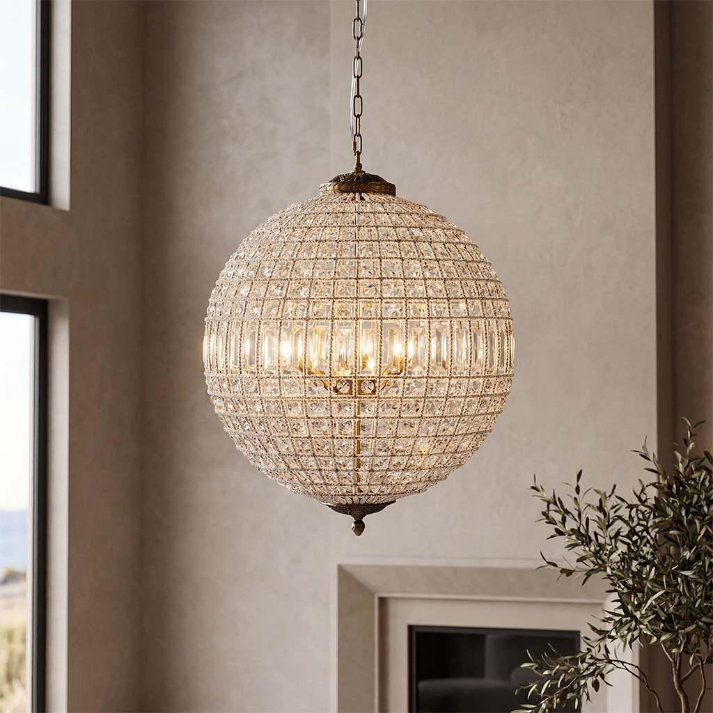 Dion Luxury French Antique Brass Crystal Globe Chandelier