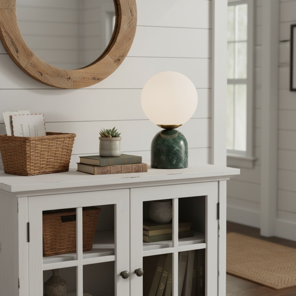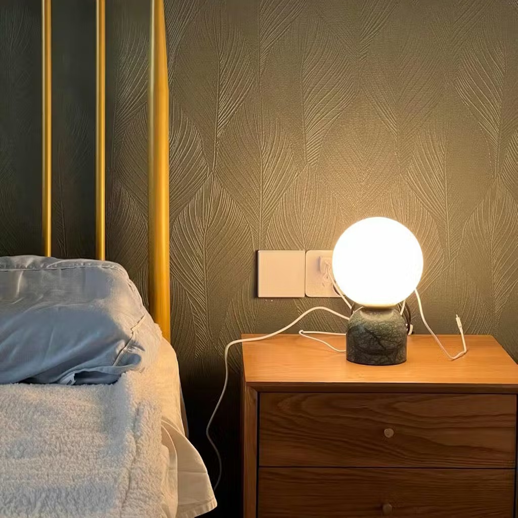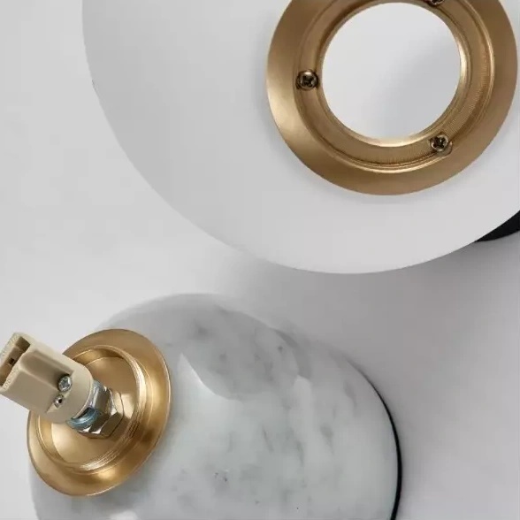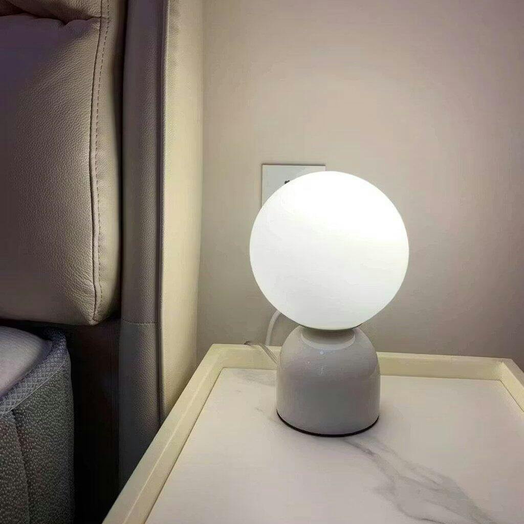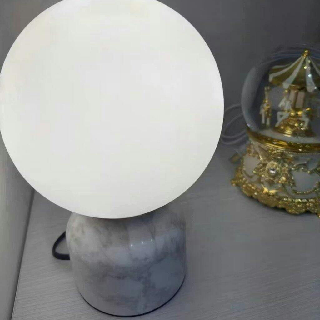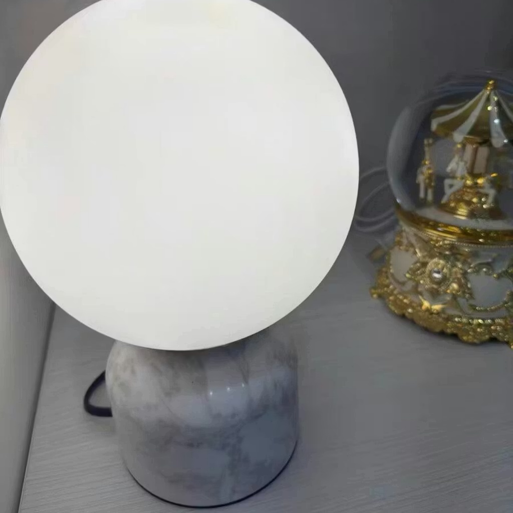 This modern marble table lamp combines modern minimalist lines with luxurious materials to light up any interior spaces. Designed with a solid marble base and a global glass lampshade, the opal ball adds a touch of fashion, and designers love to use them in pairs, ideal for living rooms or bedrooms.