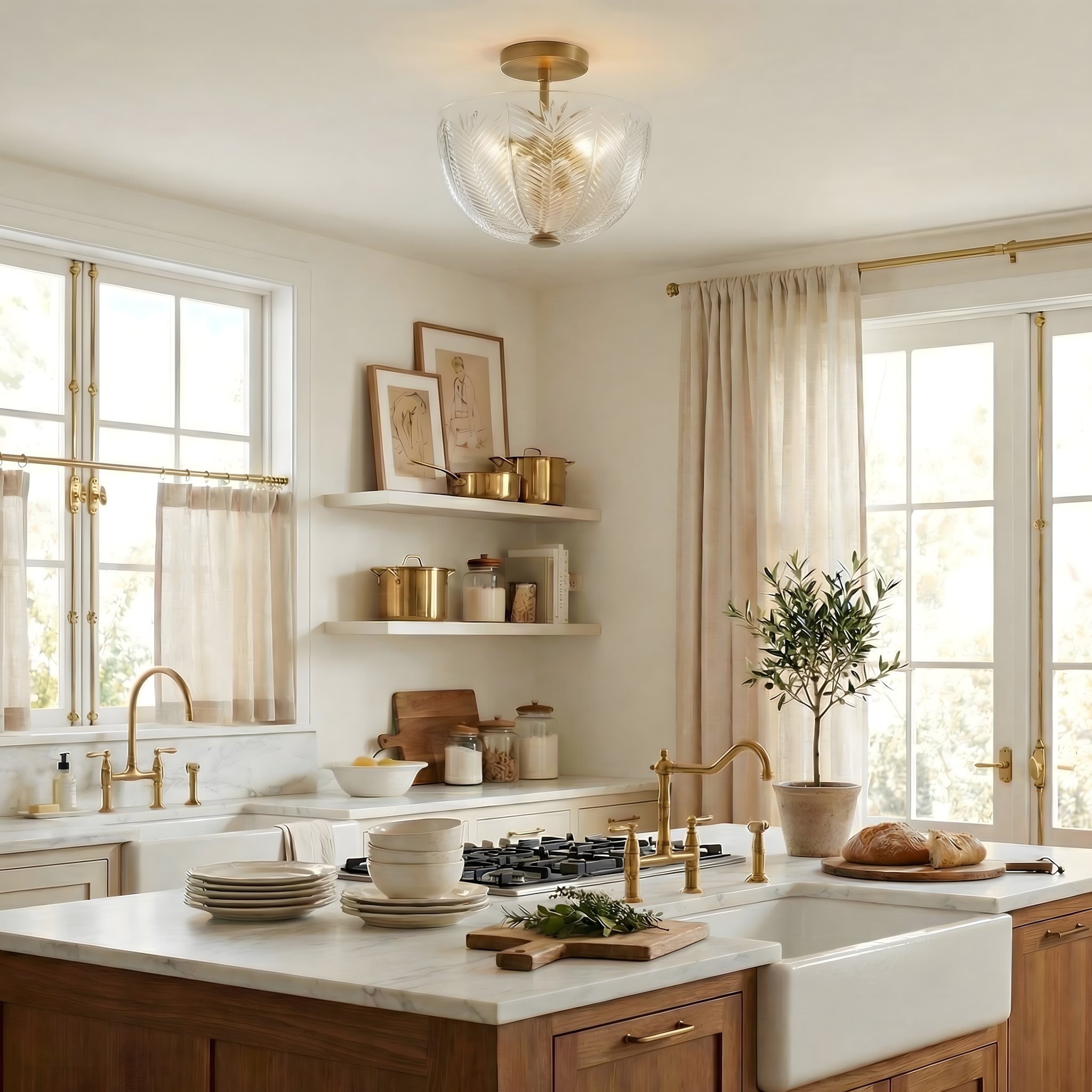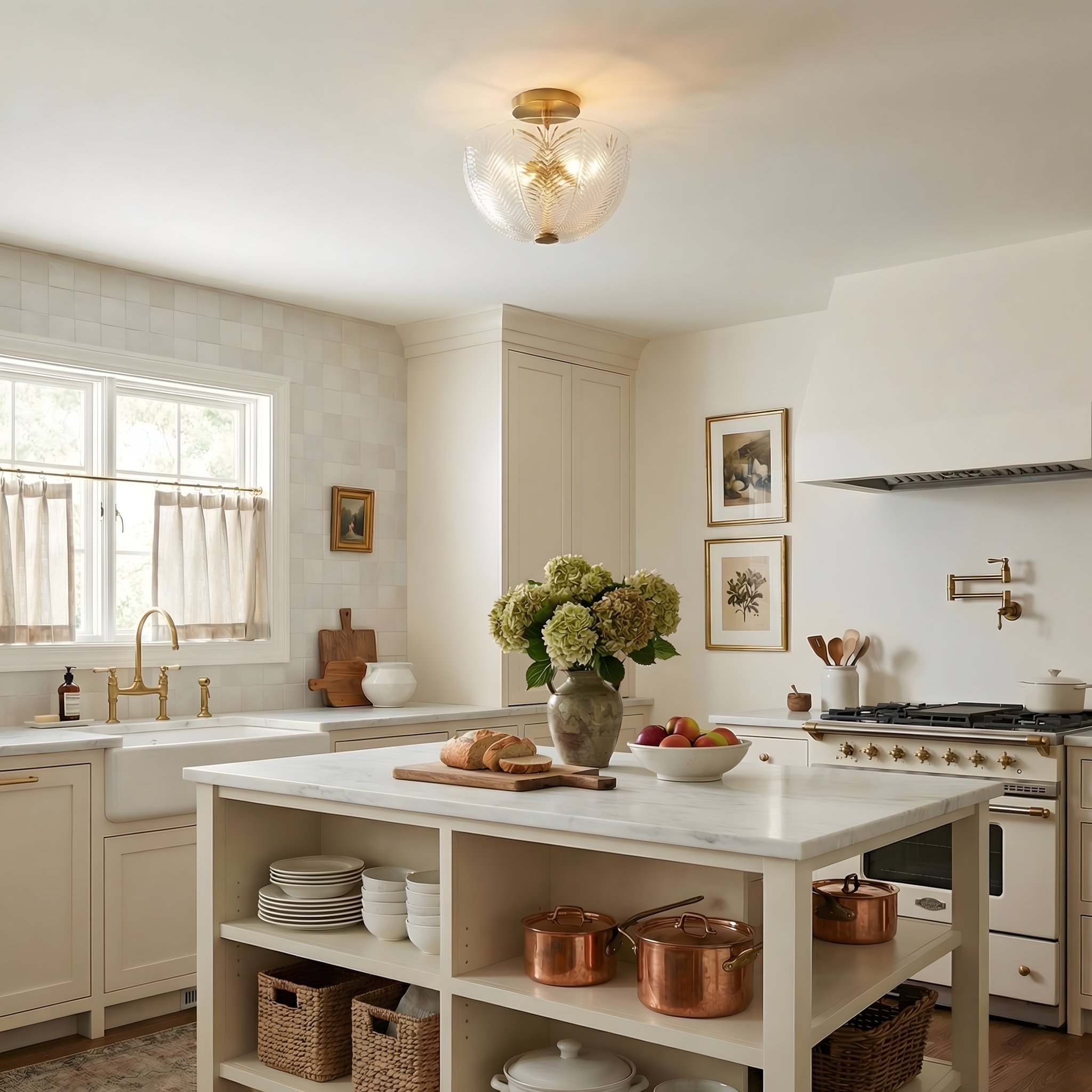Danica Mid-century Glass Leaf Round Flush Mount Ceiling Light