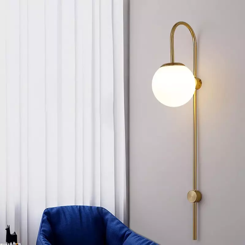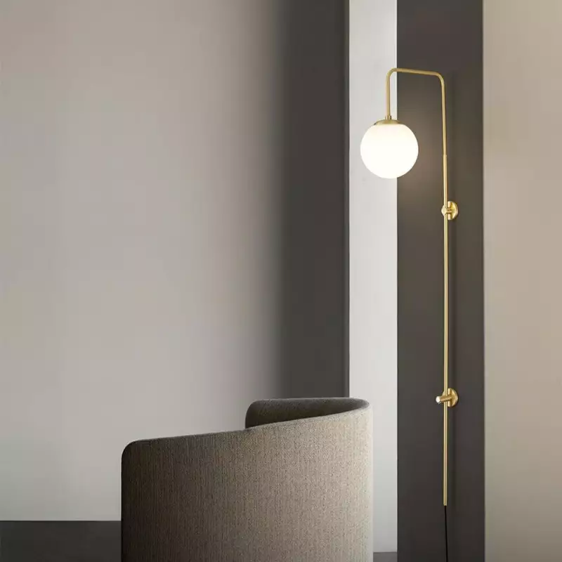Qorven Minimalist Long Pole Globe Brass Plug In Wall Sconce