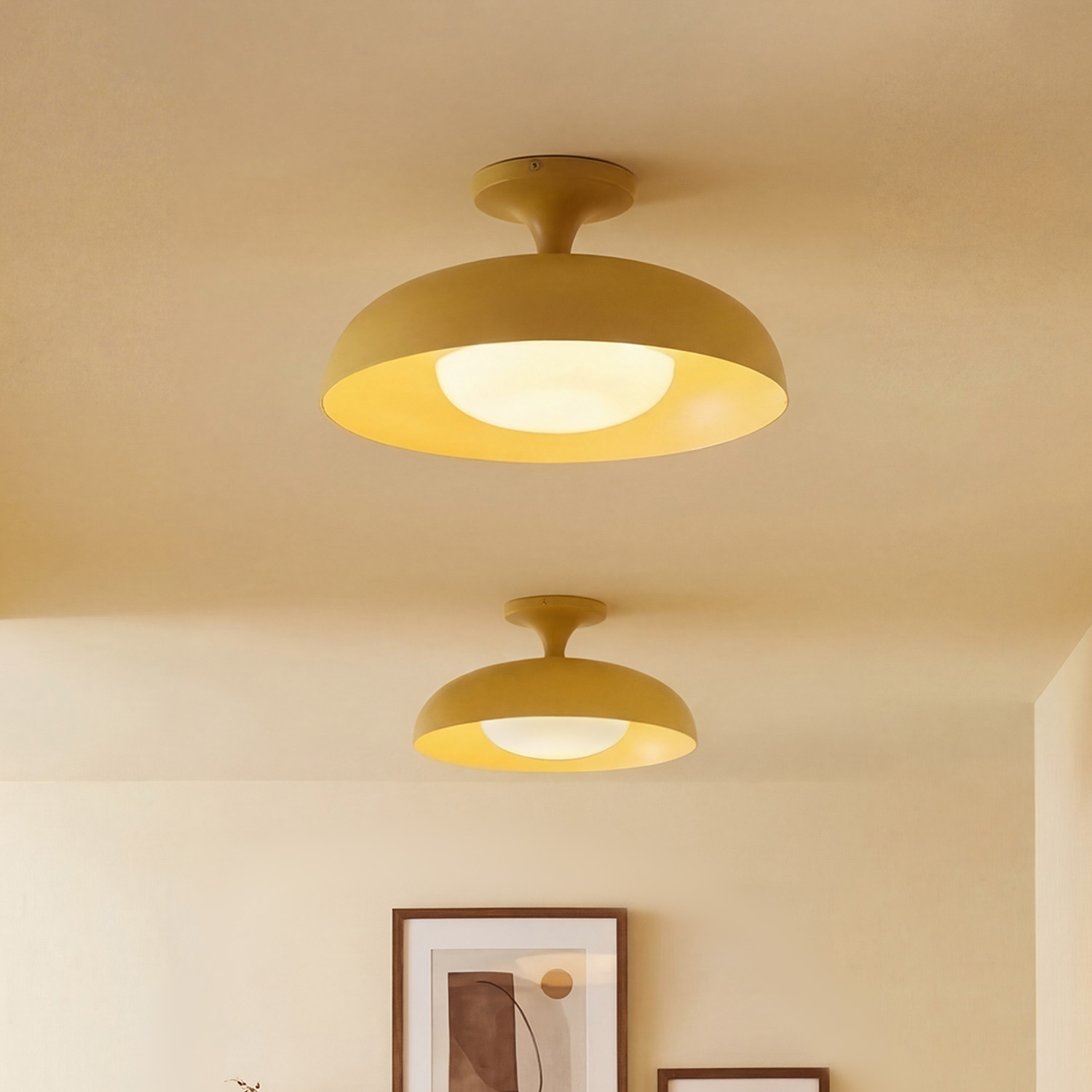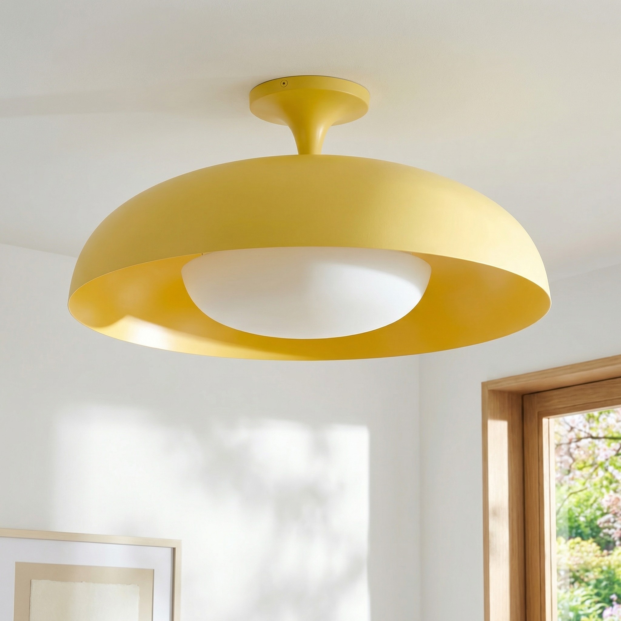 The Minimalist Yellow Round Flush Mount Light features a mild steel canopy and Yellowstone-finished shade, updating retro aesthetics with modern chic. Perfect for bedrooms, playrooms, or home offices, it adds ambient light in style.