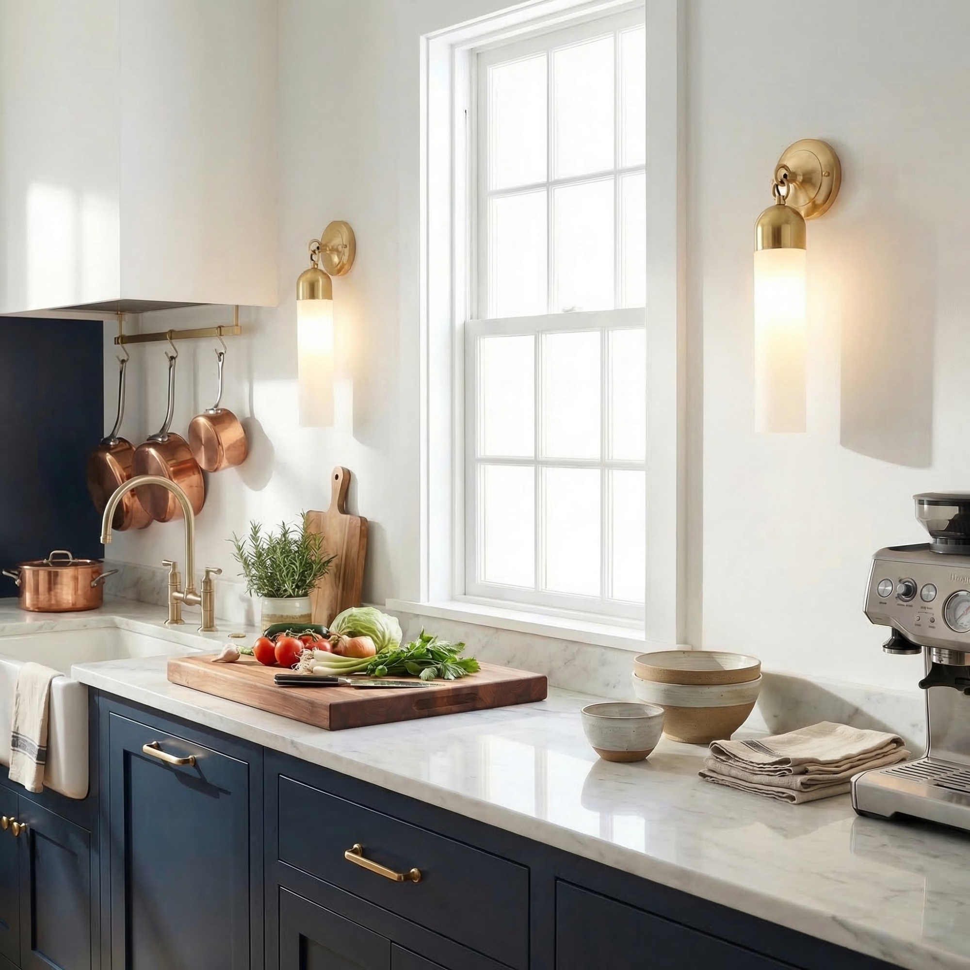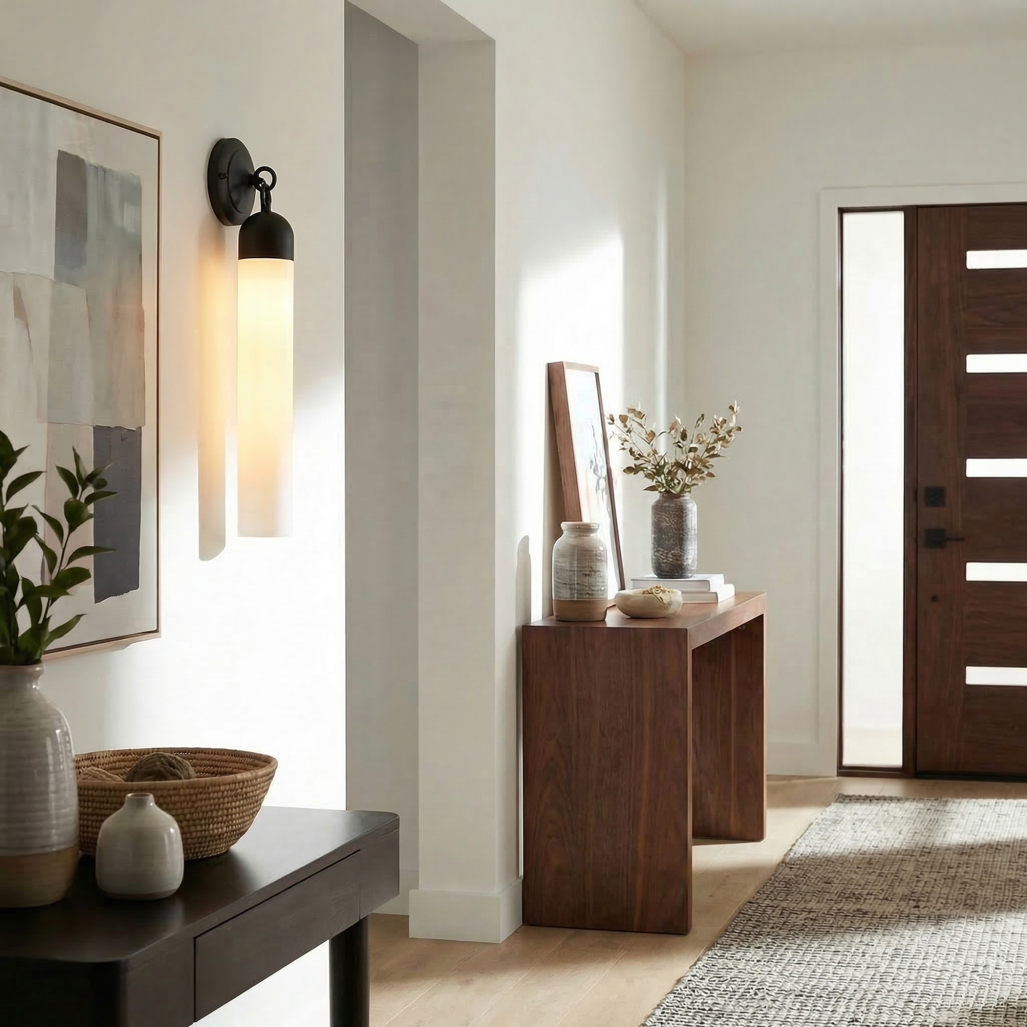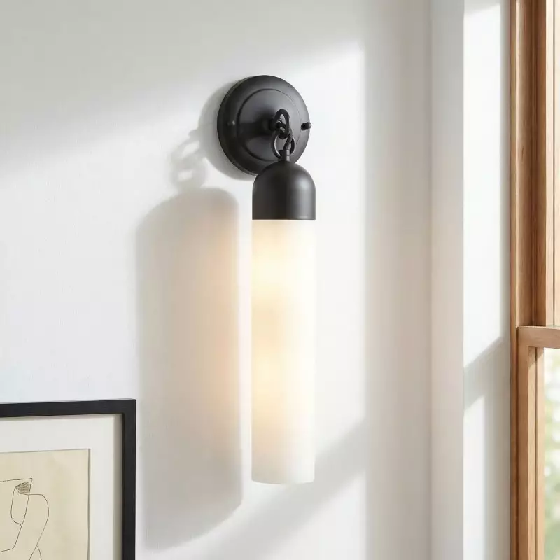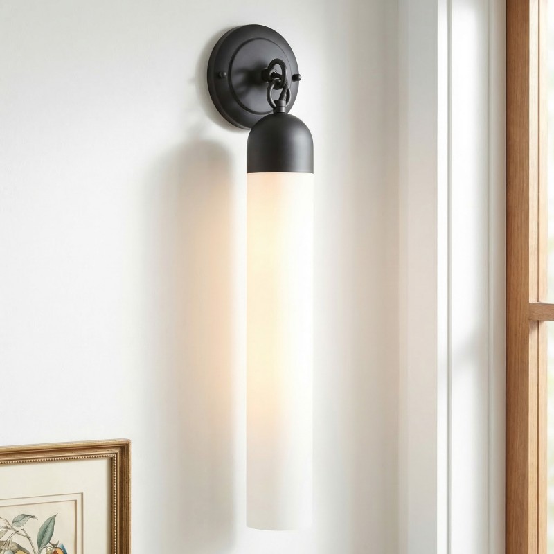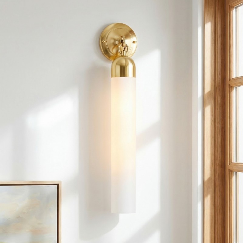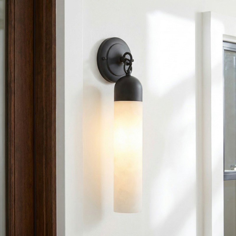 Morgan Minimalist Cylindrical Glass or Alabaster Wall Light