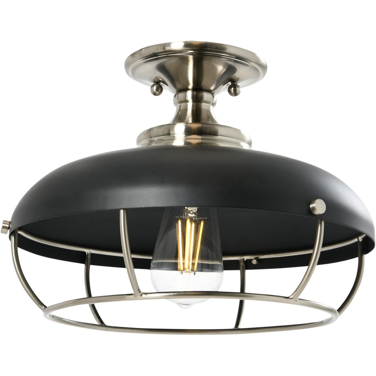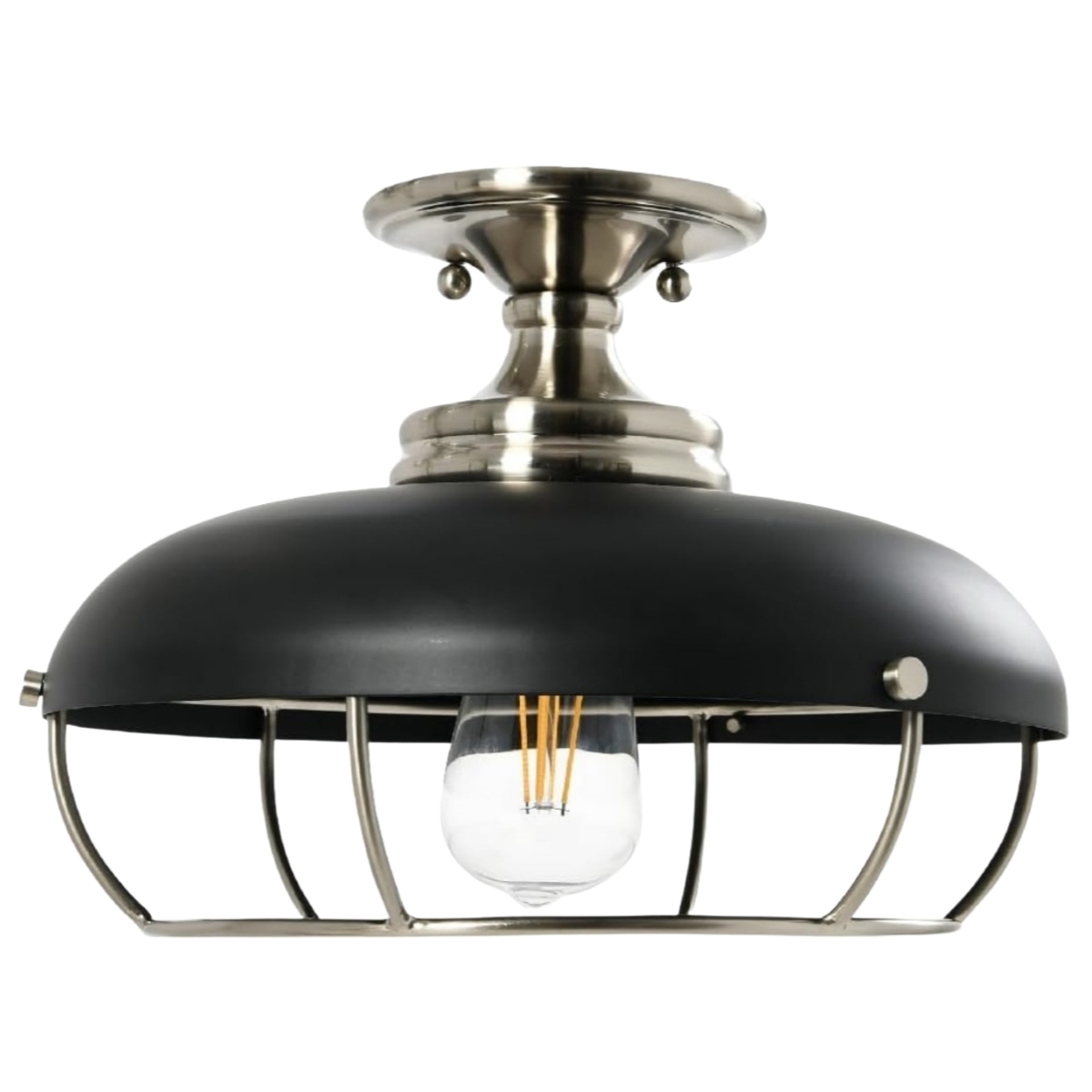 Industrial Caged Dome Metal Semi-Flush Mount Ceiling Light