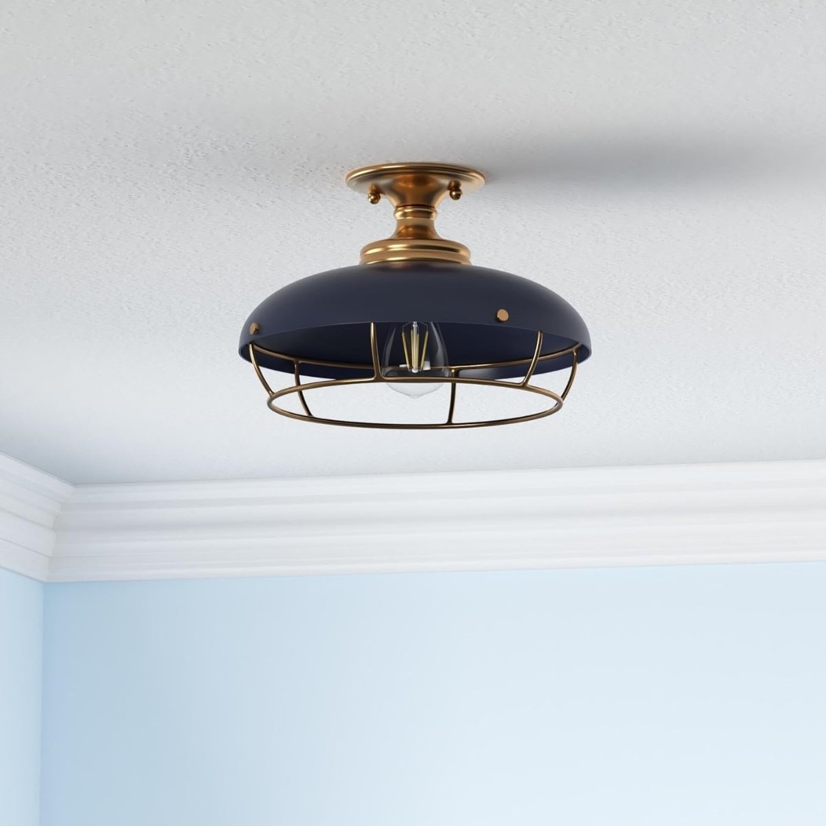 Muir Industrial Caged Dome Metal Semi-Flush Mount Ceiling Light