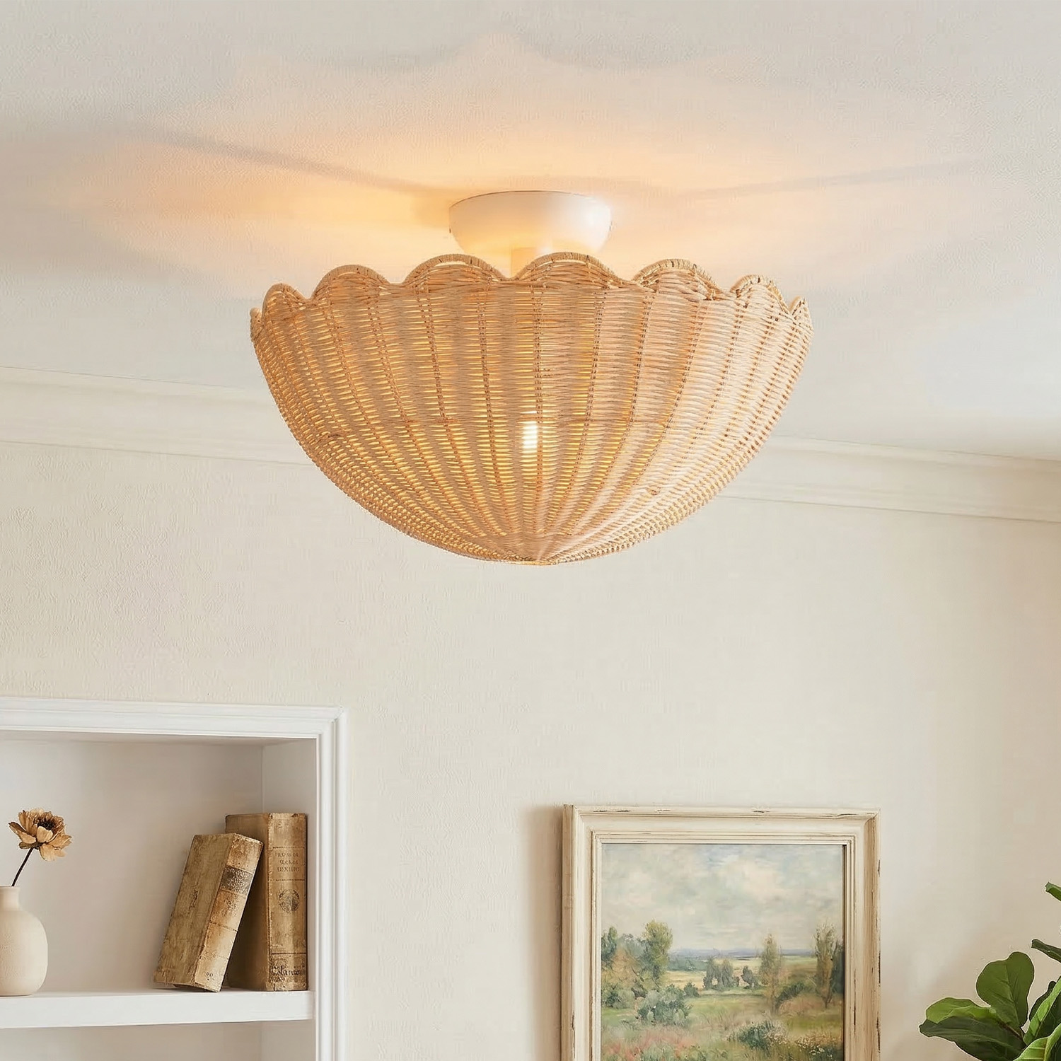 Andrew Natural Flower Rattan Flush Mount Ceiling Light