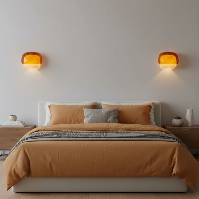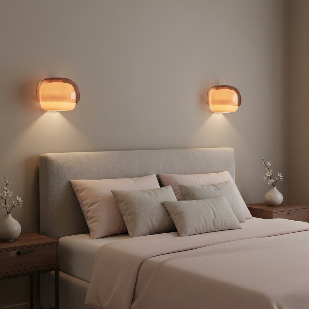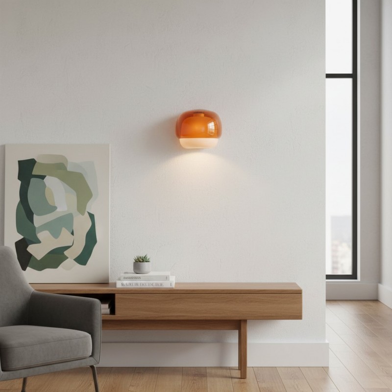 This charming wall sconce features a unique mushroom-shaped double-layered glass shade in complementary tones, adding a touch of  elegance to any room. Perfect for bedroom walls, entryways, reading nooks, and modern hallways, this wall light combines style with functionality.