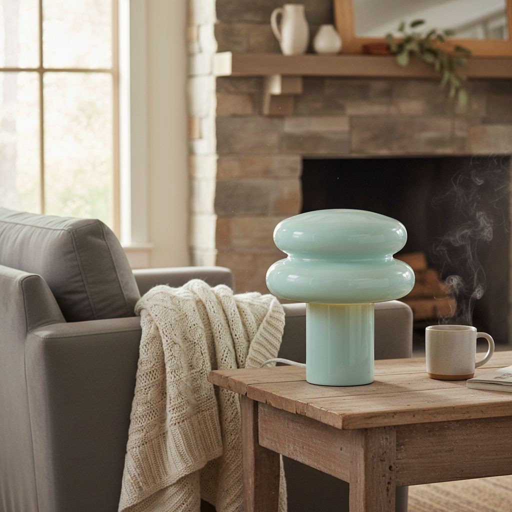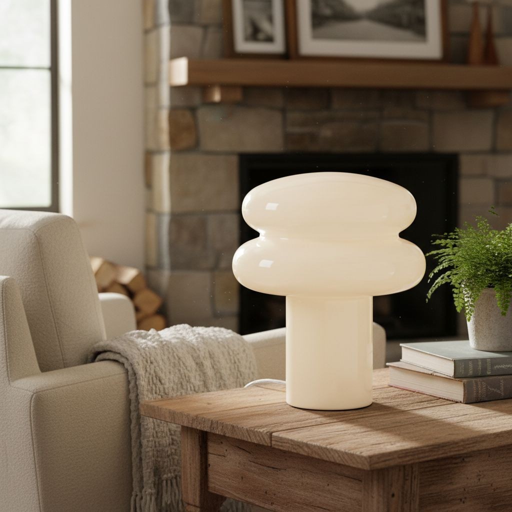 This table lamp features a smooth opal glass body with a rounded mushroom silhouette, blending Scandinavian simplicity with soft vintage charm. The gently diffused light creates a warm, calming atmosphere—perfect for bedrooms, nightstands, shelves, and cozy living spaces.
