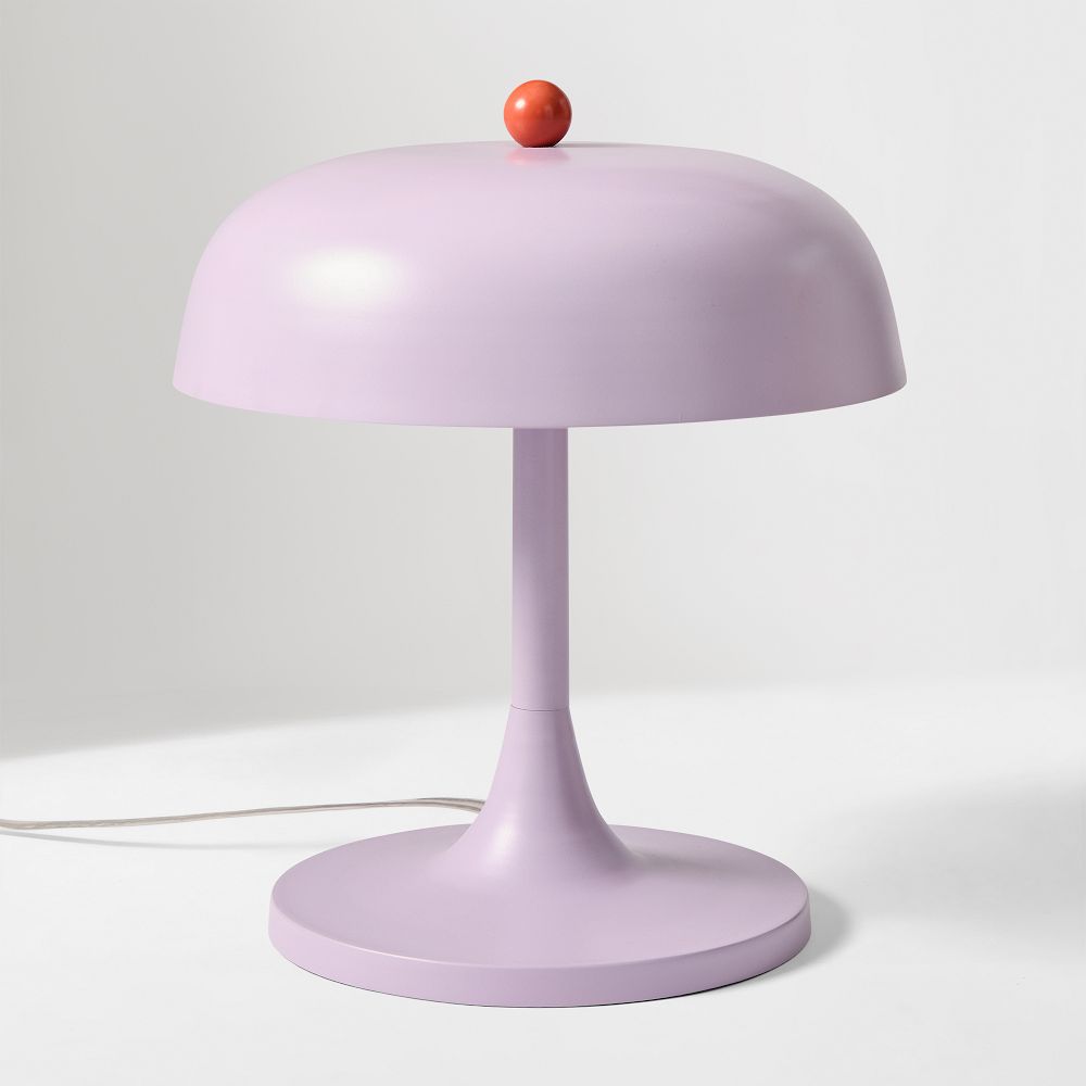 This sleek metal table lamp, featuring a Yellowstone or Fair Orchid finish and a circular shade, casts a gentle, warm light that enhances bedside tables, desks, dining areas, or cozy reading corners with modern elegance.