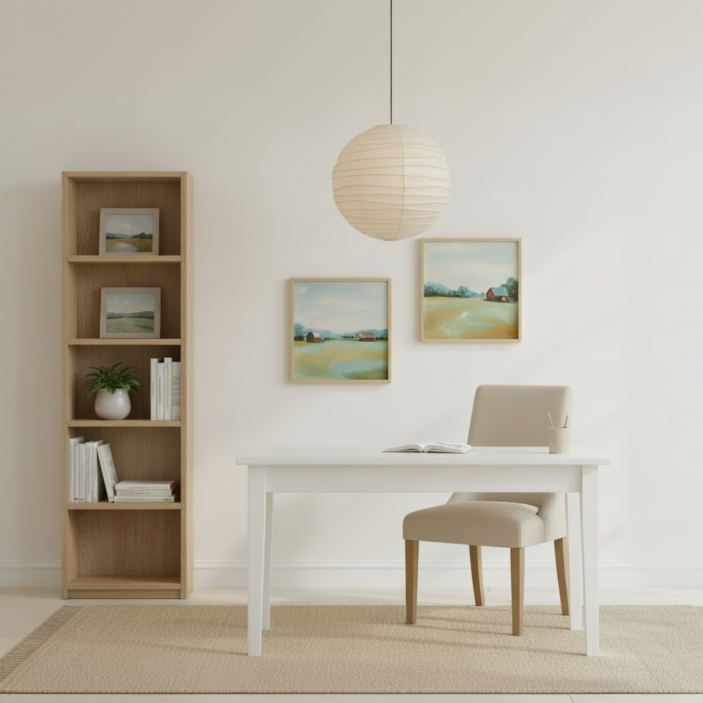 • Soft, Diffused Glow: Paper shade gently filters light for a warm, calming ambiance.