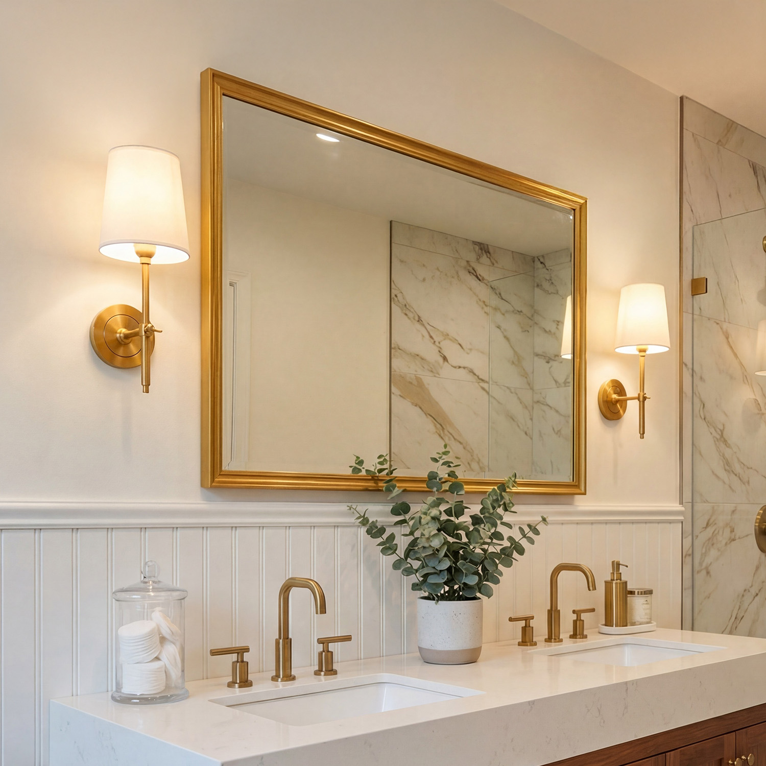 Our bathroom vanity light with delicate white linen shade brings soft and elegant lighting to your private space. The modern design with beige shade blends perfectly into a variety of spaces and adds a contemporary flavor to your home.