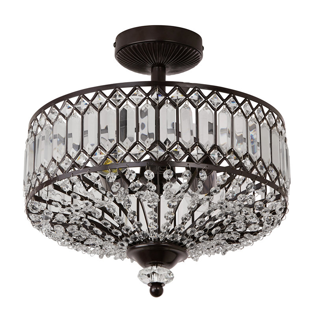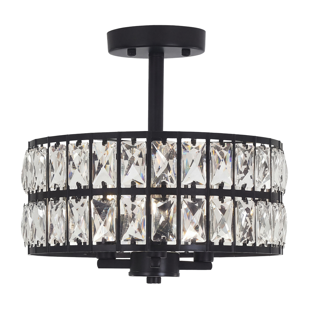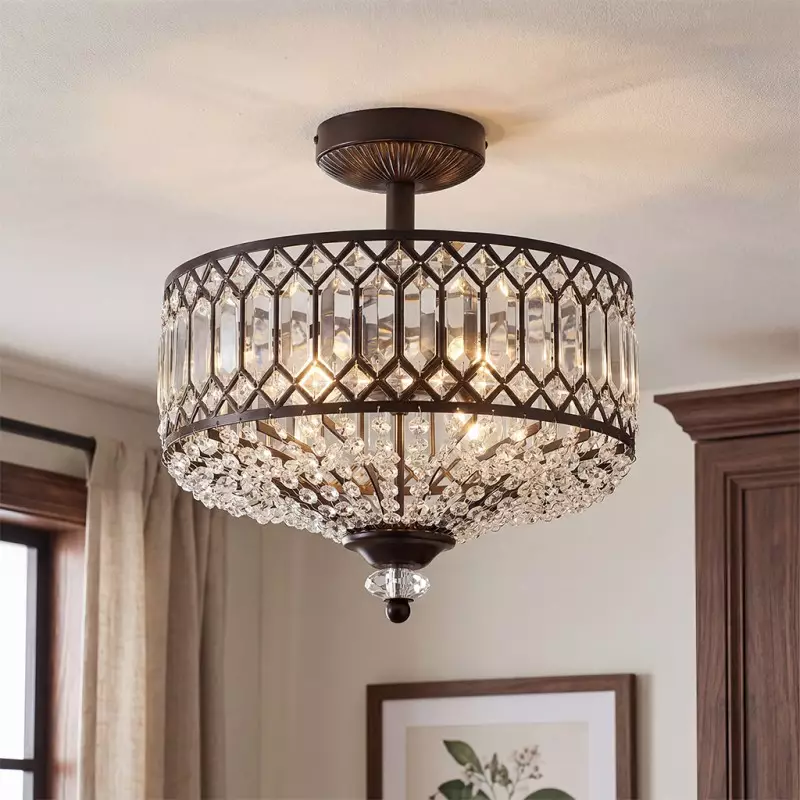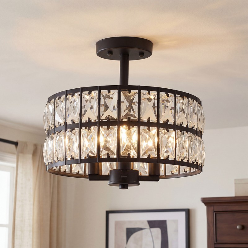 Parnika Luxury Carved Crystal Drum Semi Flush Chandelier