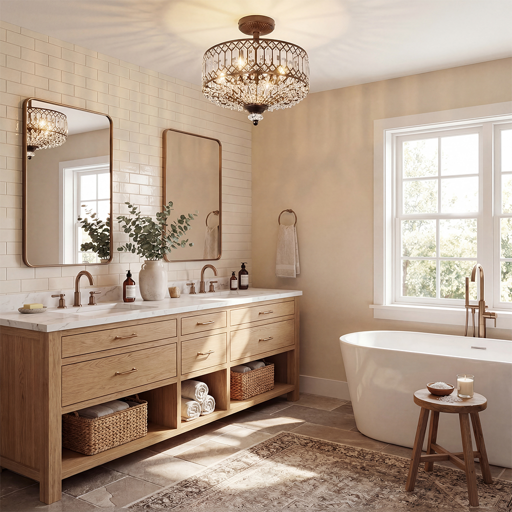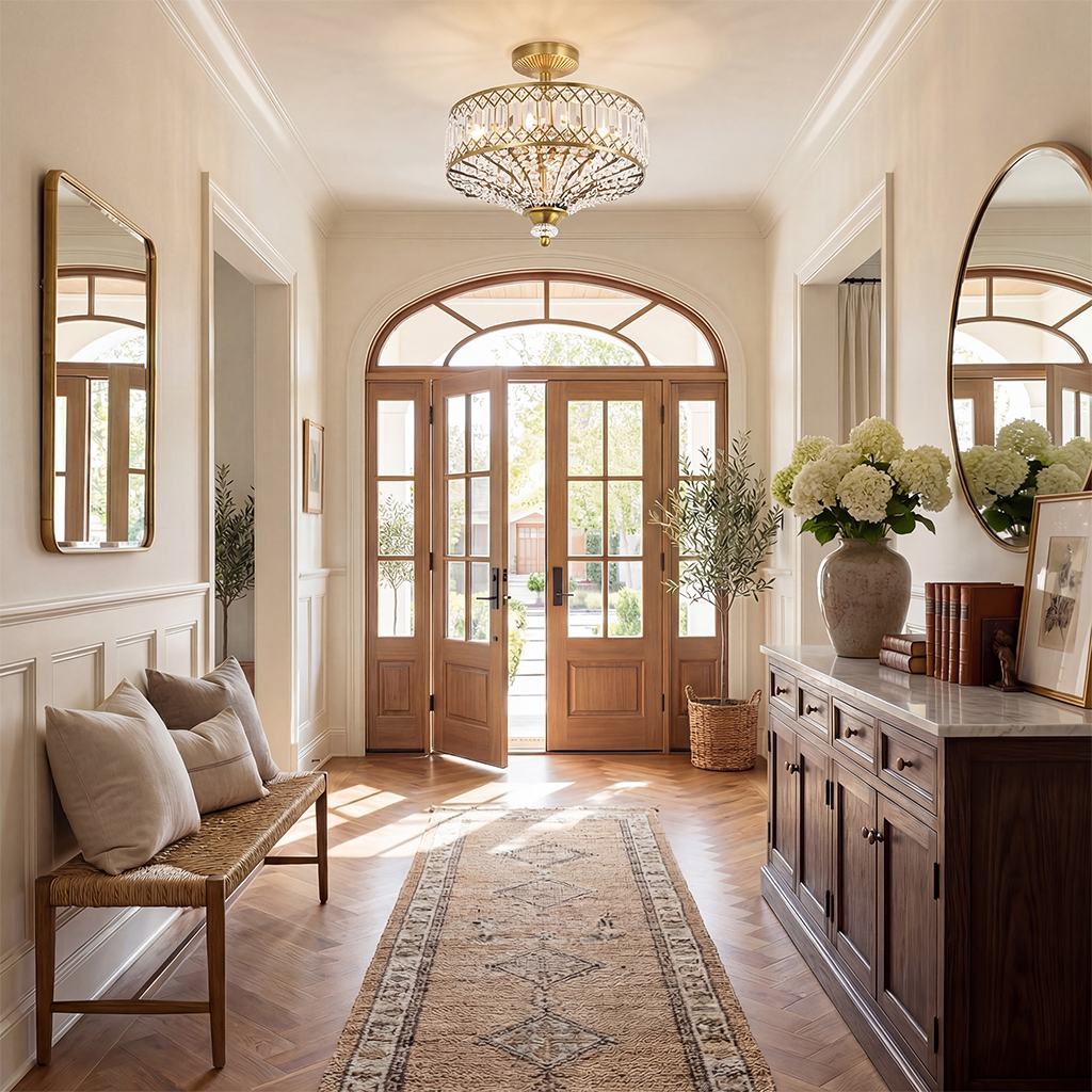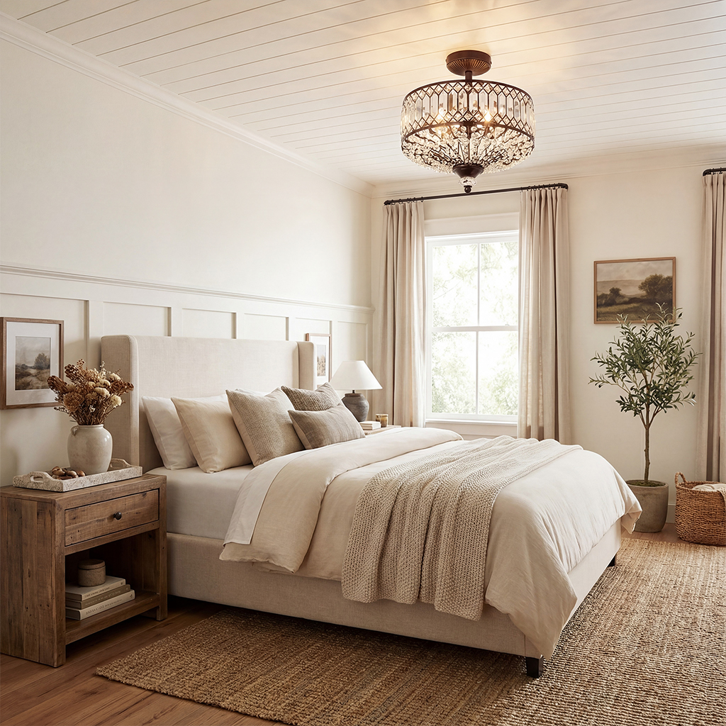 Parnika Luxury Carved Crystal Drum Semi Flush Chandelier