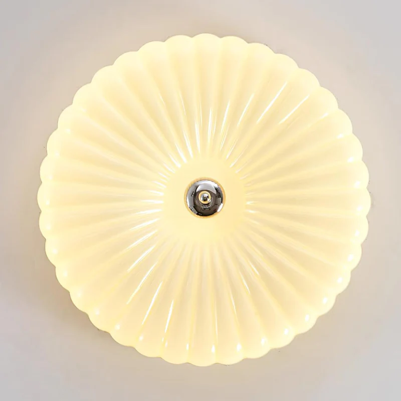 Prythos Cream Textured Glass Round Bauhaus Ceiling Light