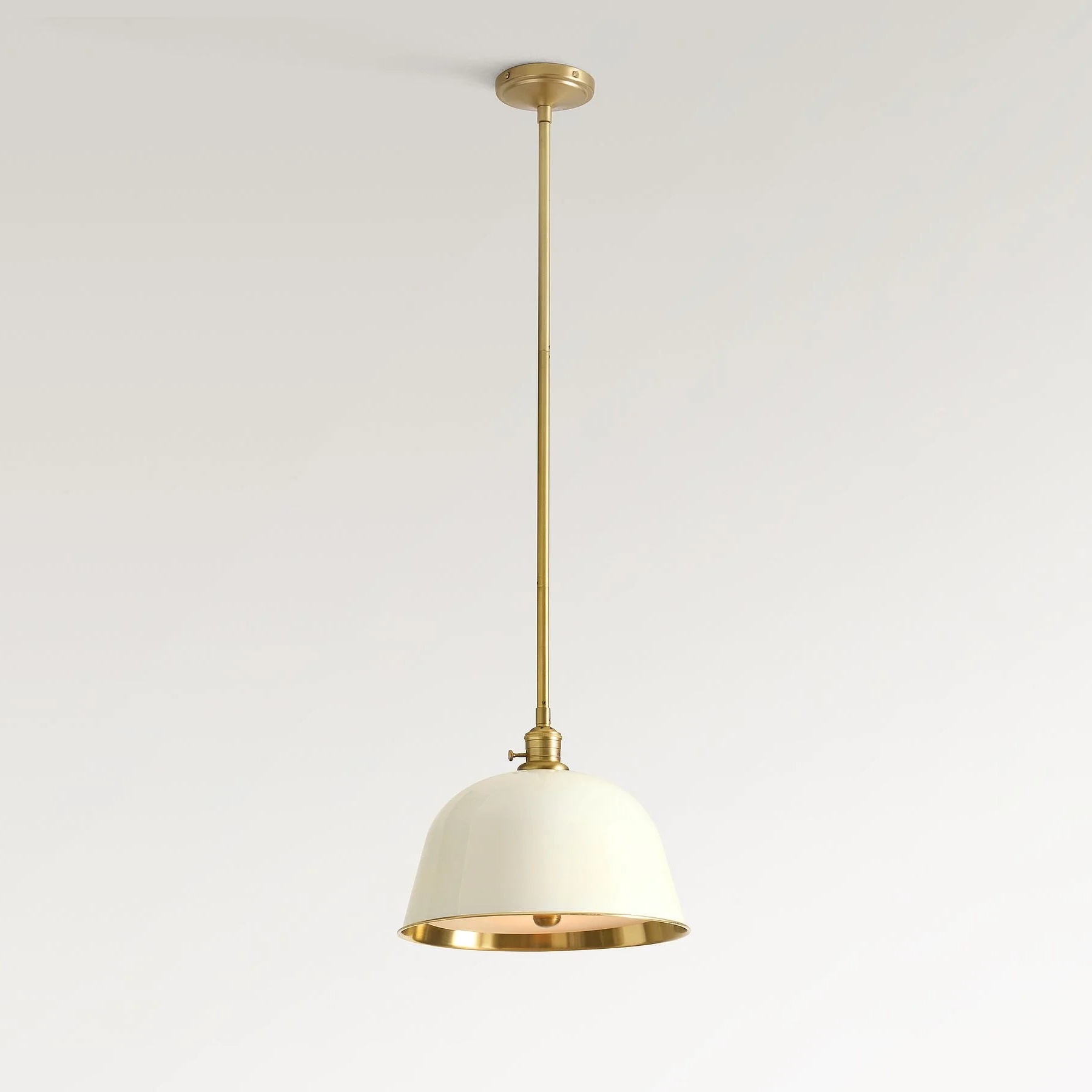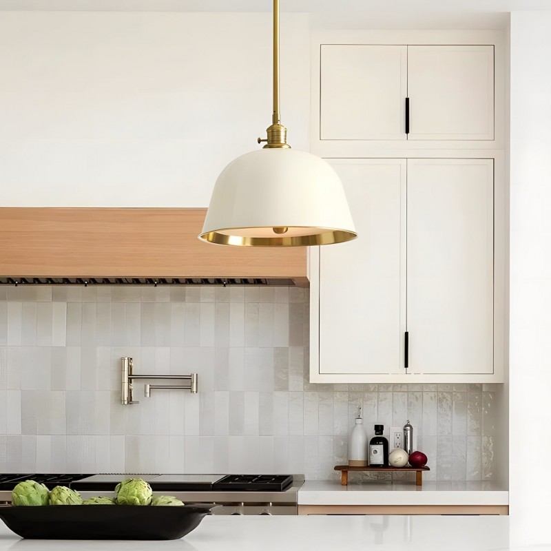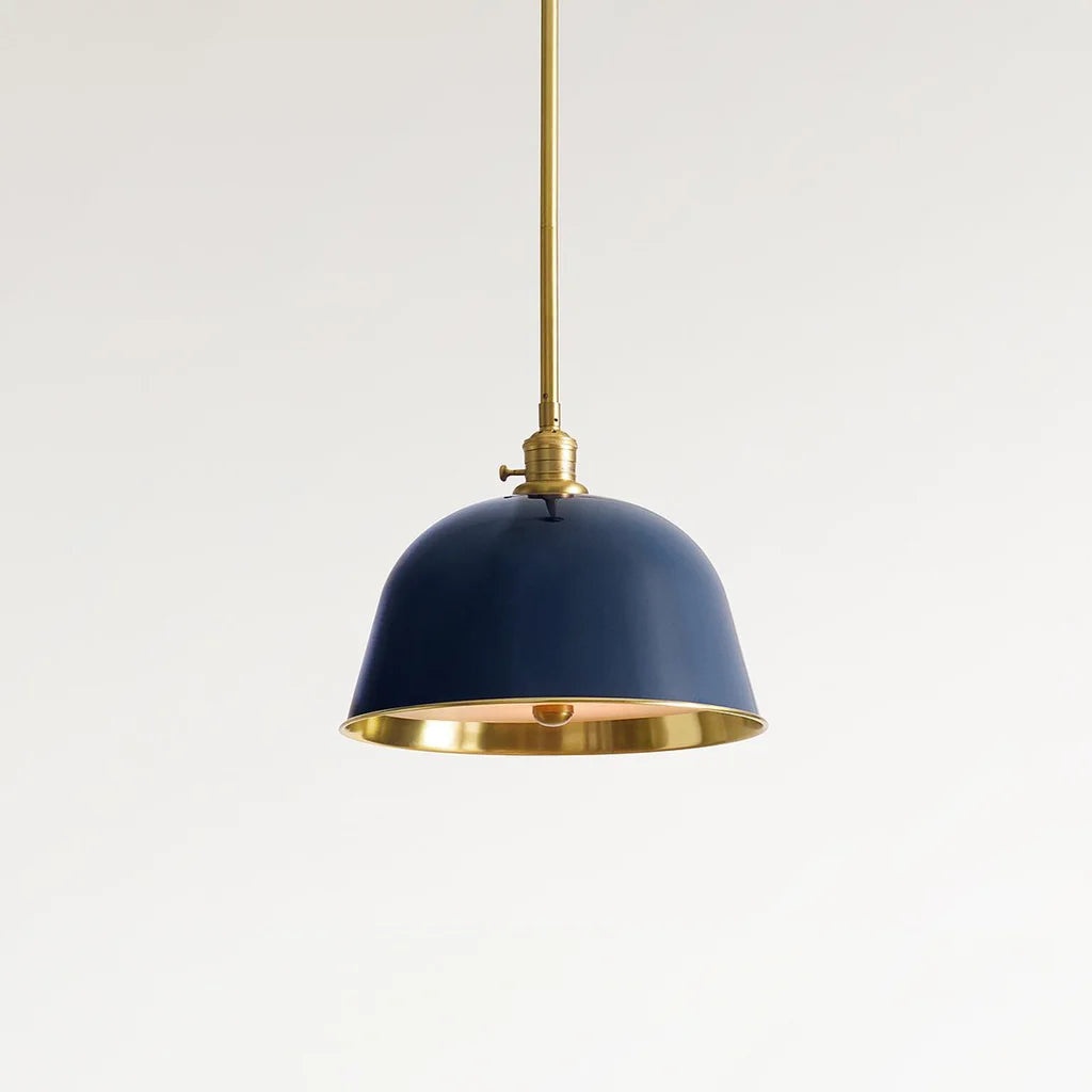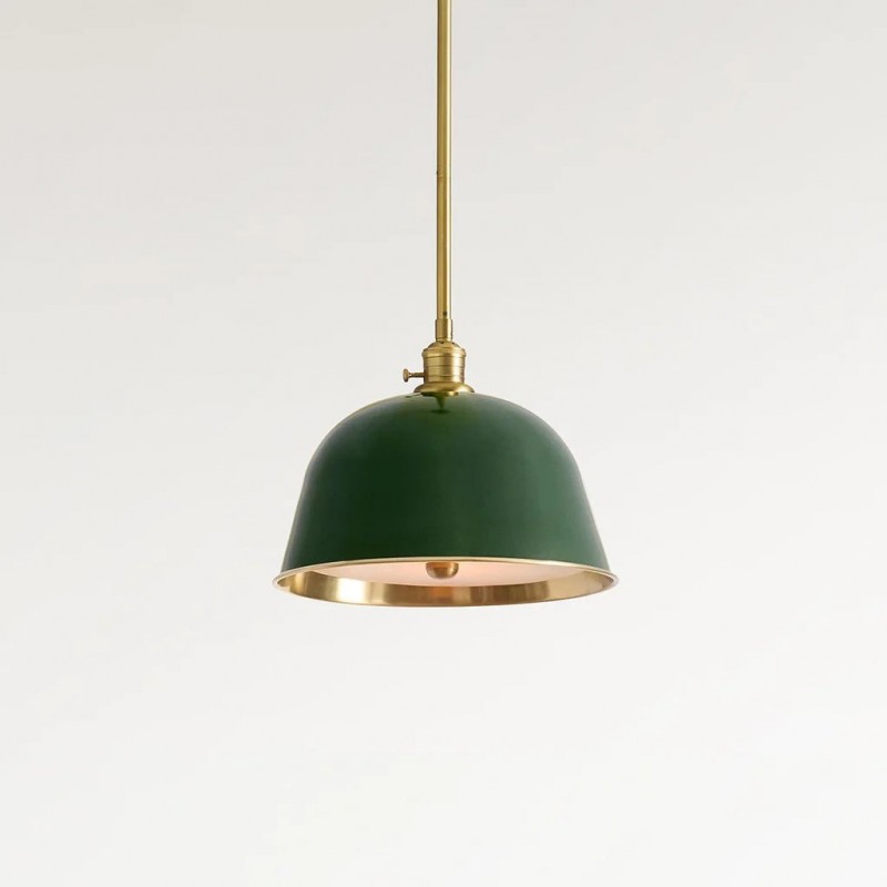 Add a pop of color to your dining tables or kitchen islands with this modern industrial metal pole pendant light. Featuring deep enamel finishes and brass-decorated interior walls, it casts a soft, colorful ambient lighting glow while maintaining a timeless, simple look that elevates any space.