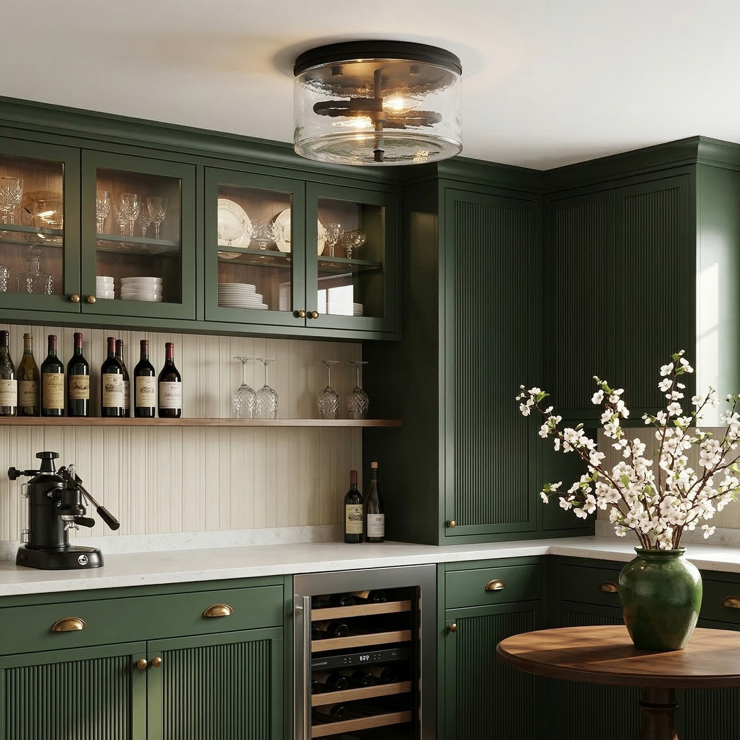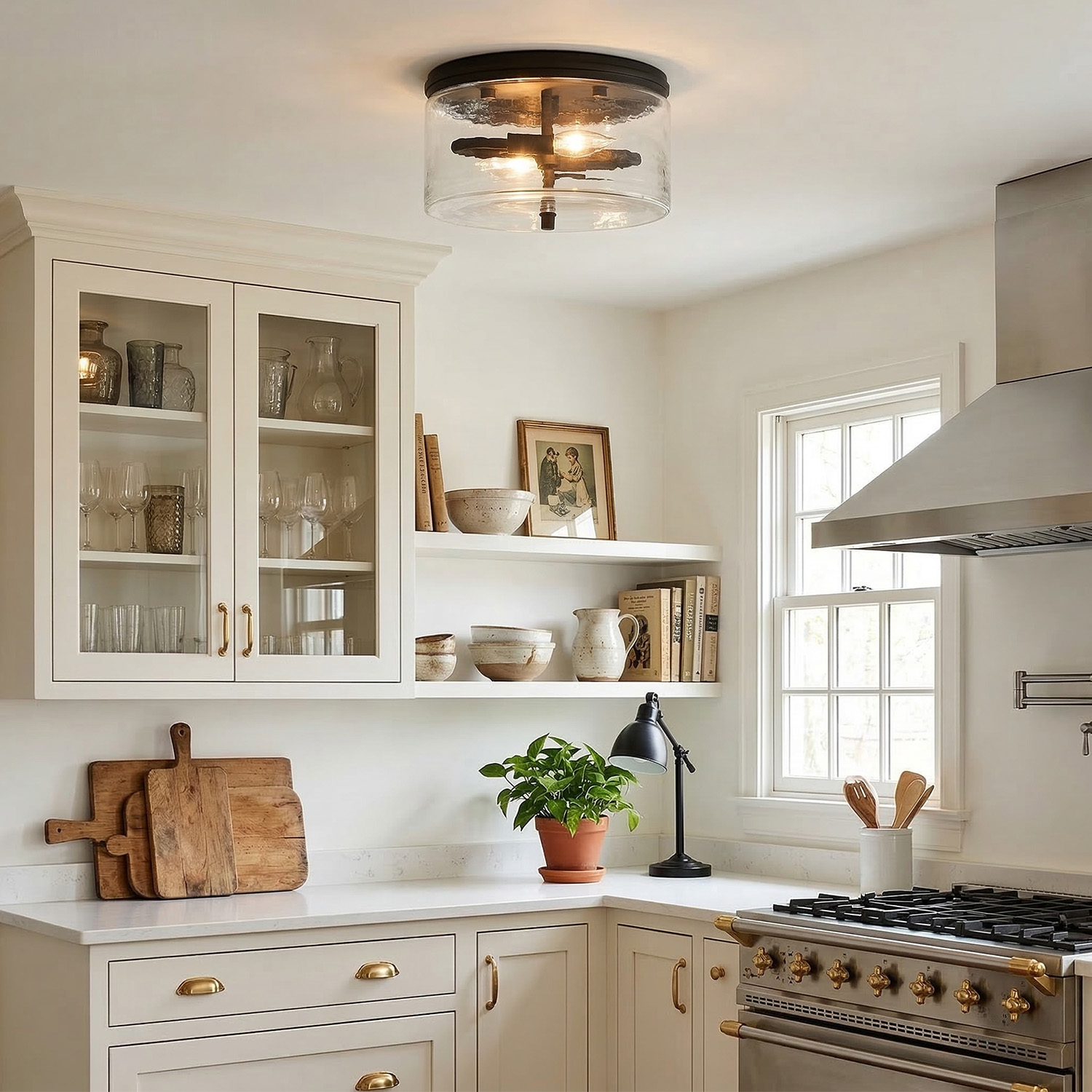 Quinlan Modern Black Drum Glass Flush Mount Ceiling Light