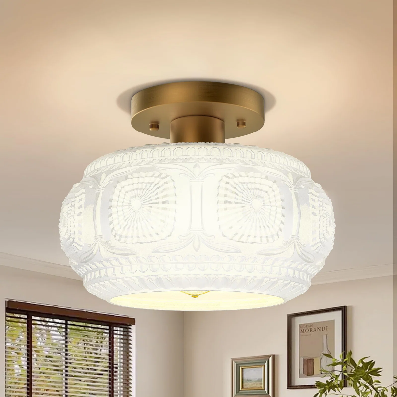 Ixionis Retro Carved Glass Semi Flush Ceiling Light