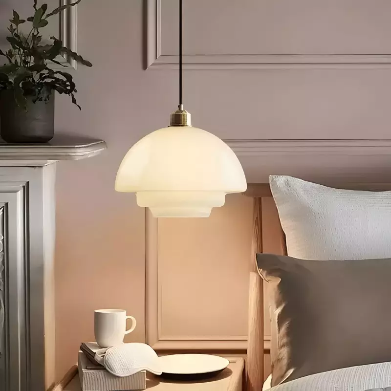 Elevate your space with this pendant light featuring a sleek cream glass shade that embodies the elegant aesthetic of mid-century vintage. With a sleek stylized look, this pendant light is both a functional lighting solution and an iconic piece of interior decor.