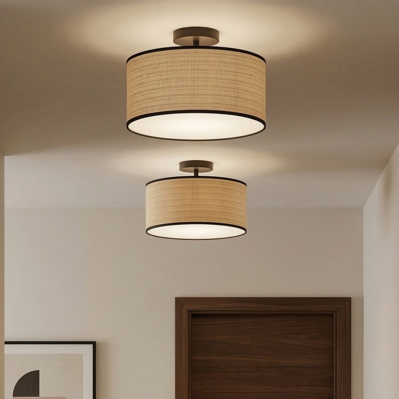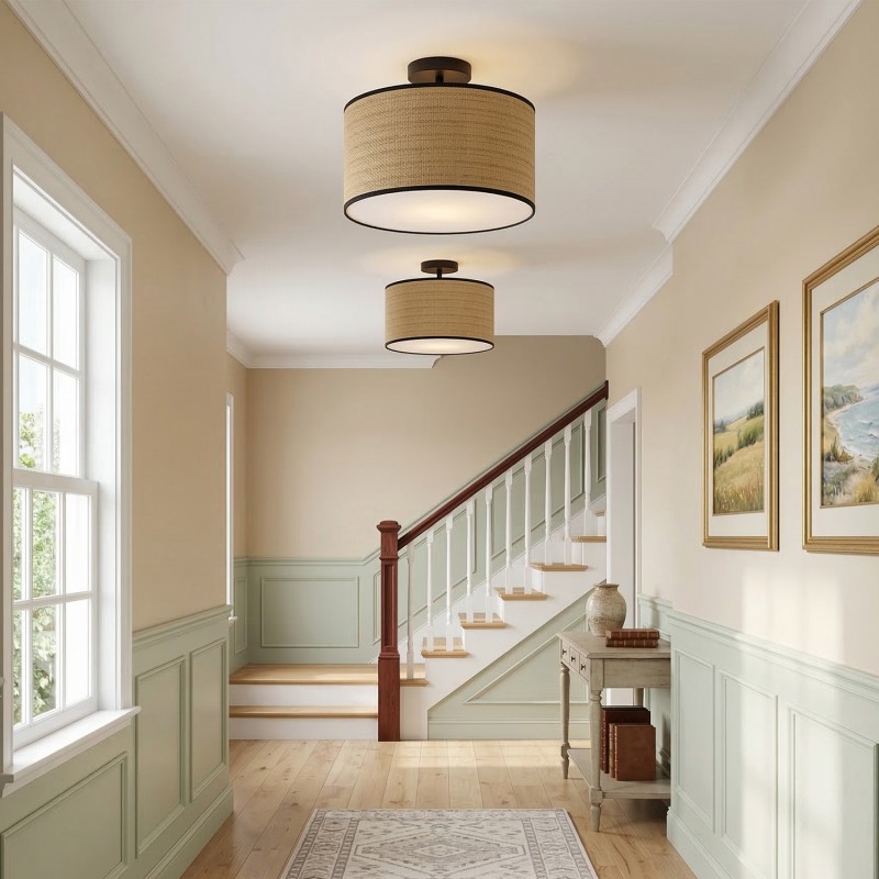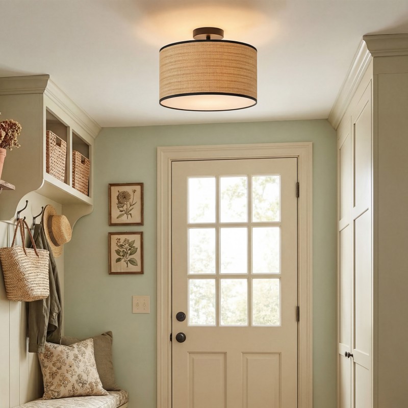 Rustic Drum Woven Flush Mount Ceiling Light